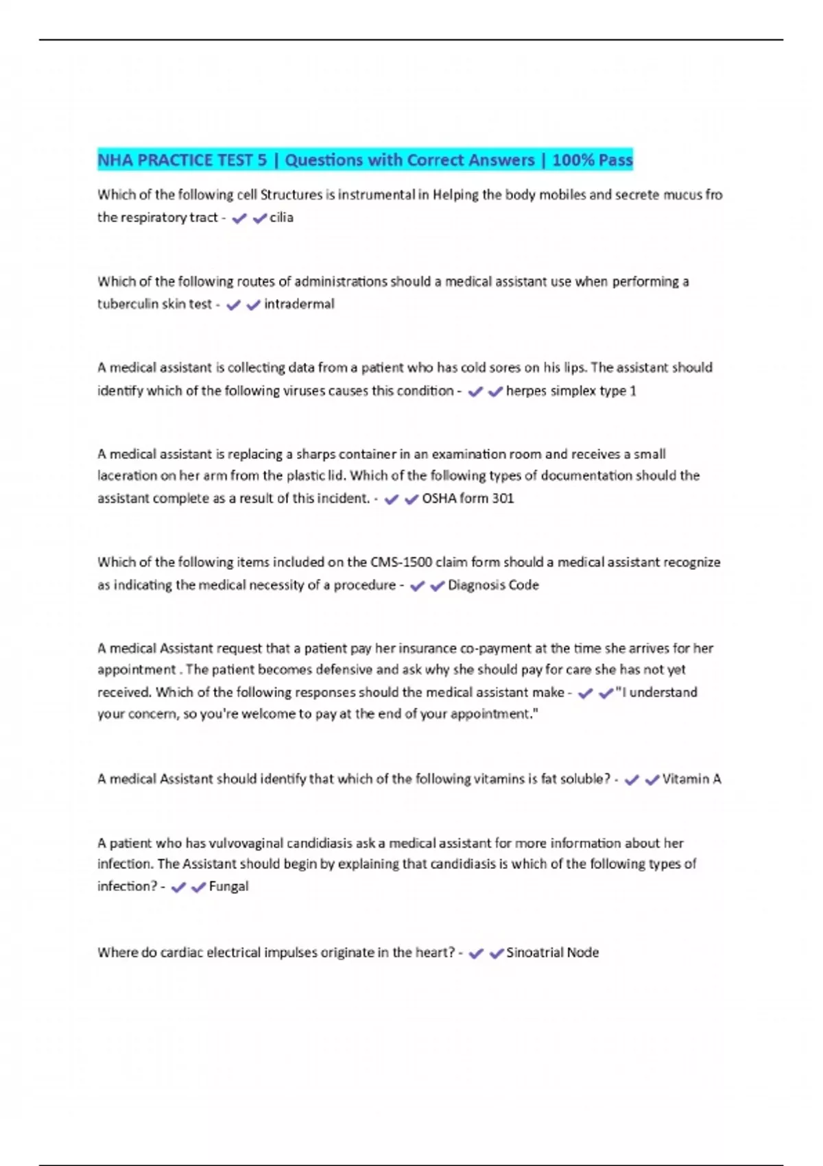 NHA PRACTICE TEST 5 | Questions with Correct Answers | 100% Pass