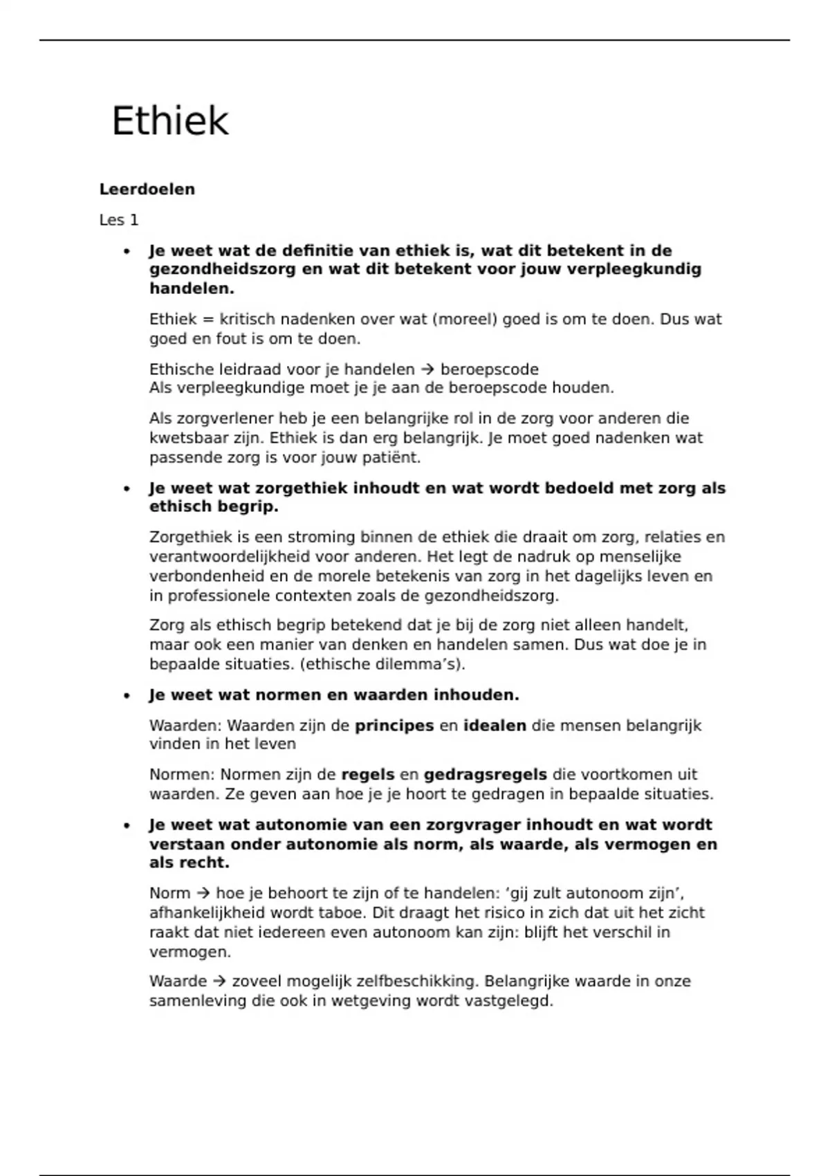Je weet wat zorgethiek inhoudt en wat wordt bedoeld met zorg als