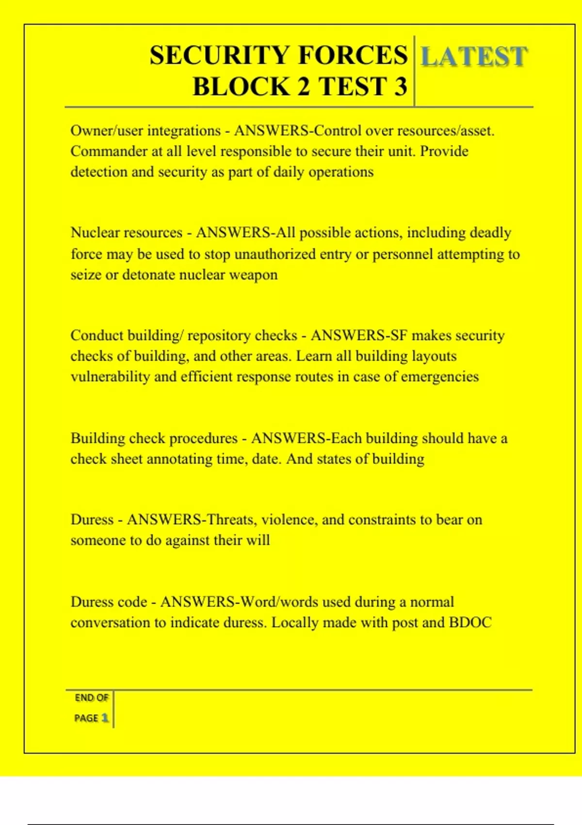 SECURITY FORCES BLOCK 2 TEST 3 QUESTIONS AND ANSWERS 2025