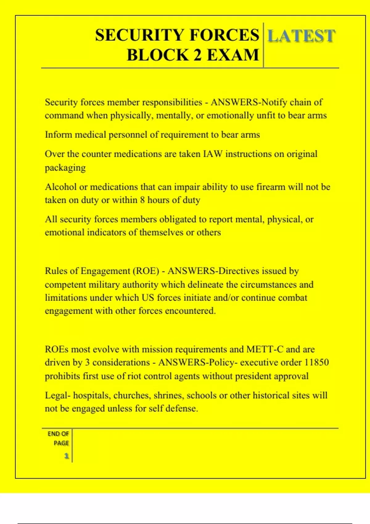 SECURITY FORCES BLOCK 2 EXAM QUESTIONS AND ANSWERS 2025