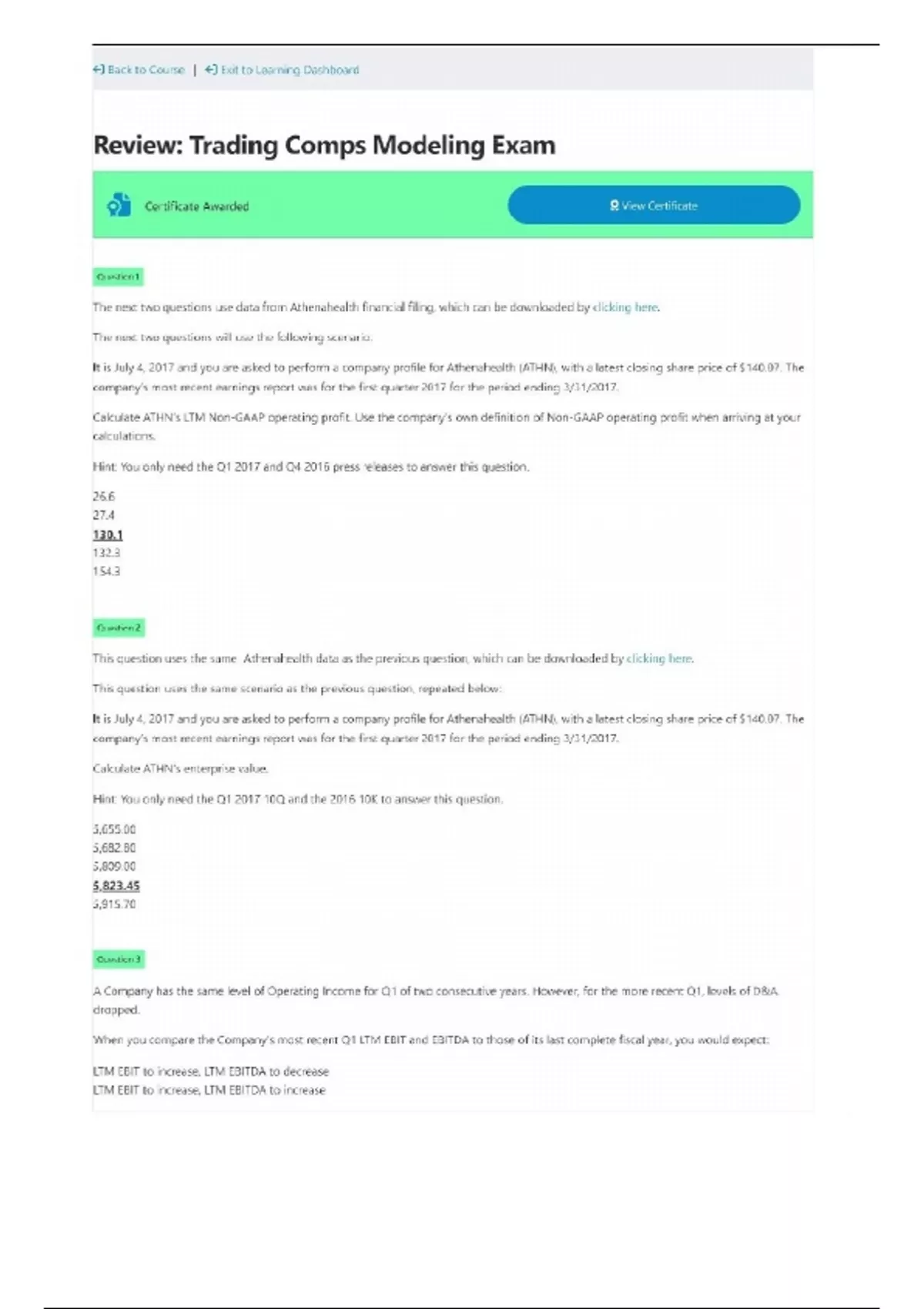 Trading Comps Modeling Exam Wall Street Prep