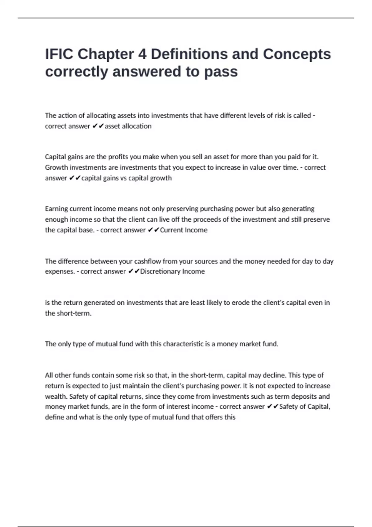 money market funds, are in the form of interest income - correct answer ✔✔Safety of Capital,
