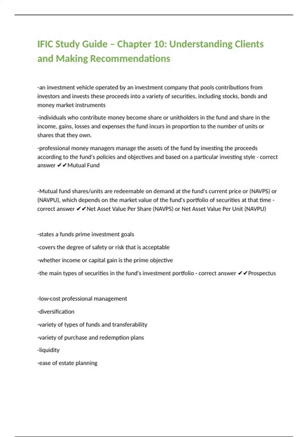-the main types of securities in the fund's investment portfolio - correct answer ✔✔Prospectus