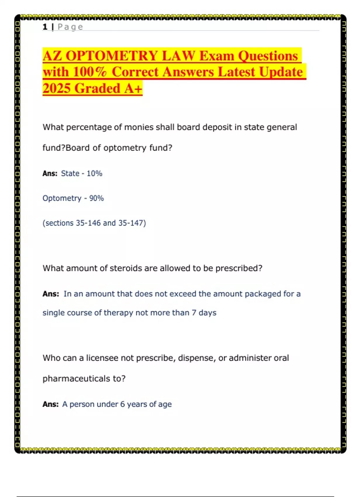 AZ OPTOMETRY LAW Exam Questions
