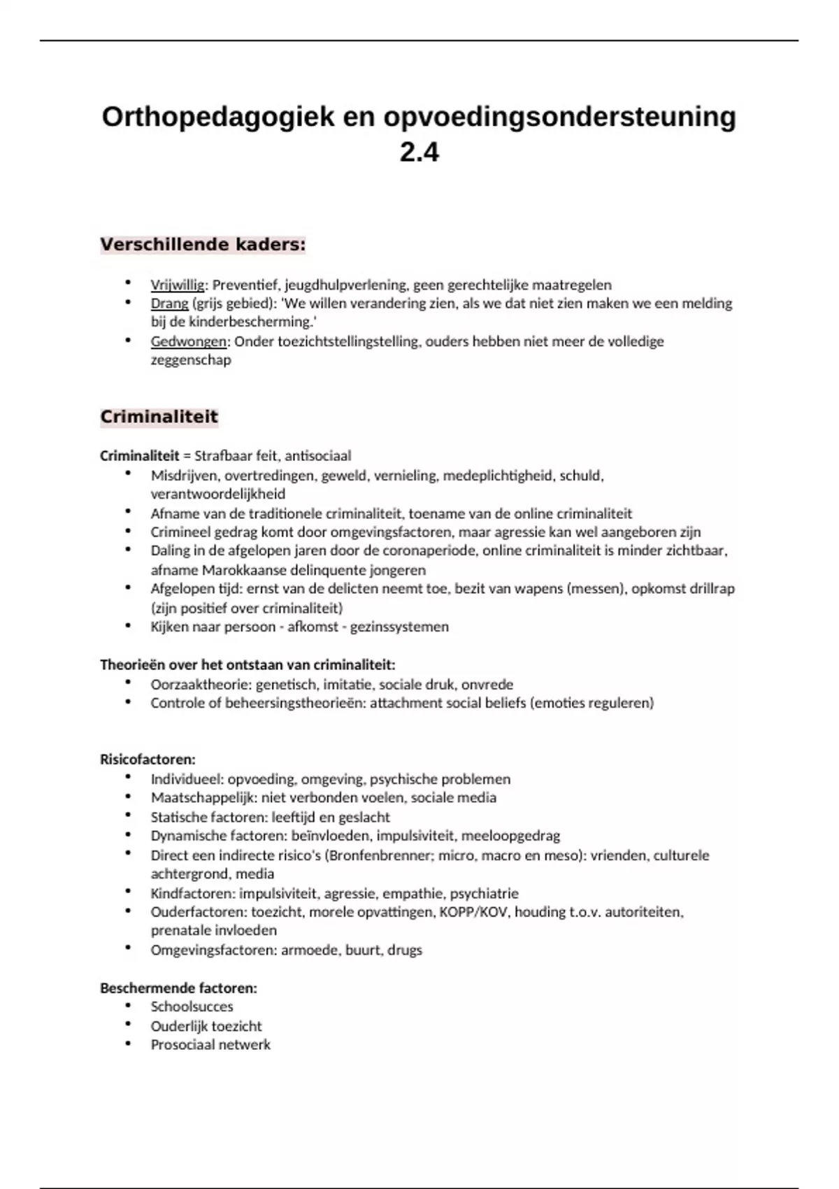 Ouderfactoren: toezicht, morele opvattingen, KOPP/KOV, houding t.o.v. autoriteiten,