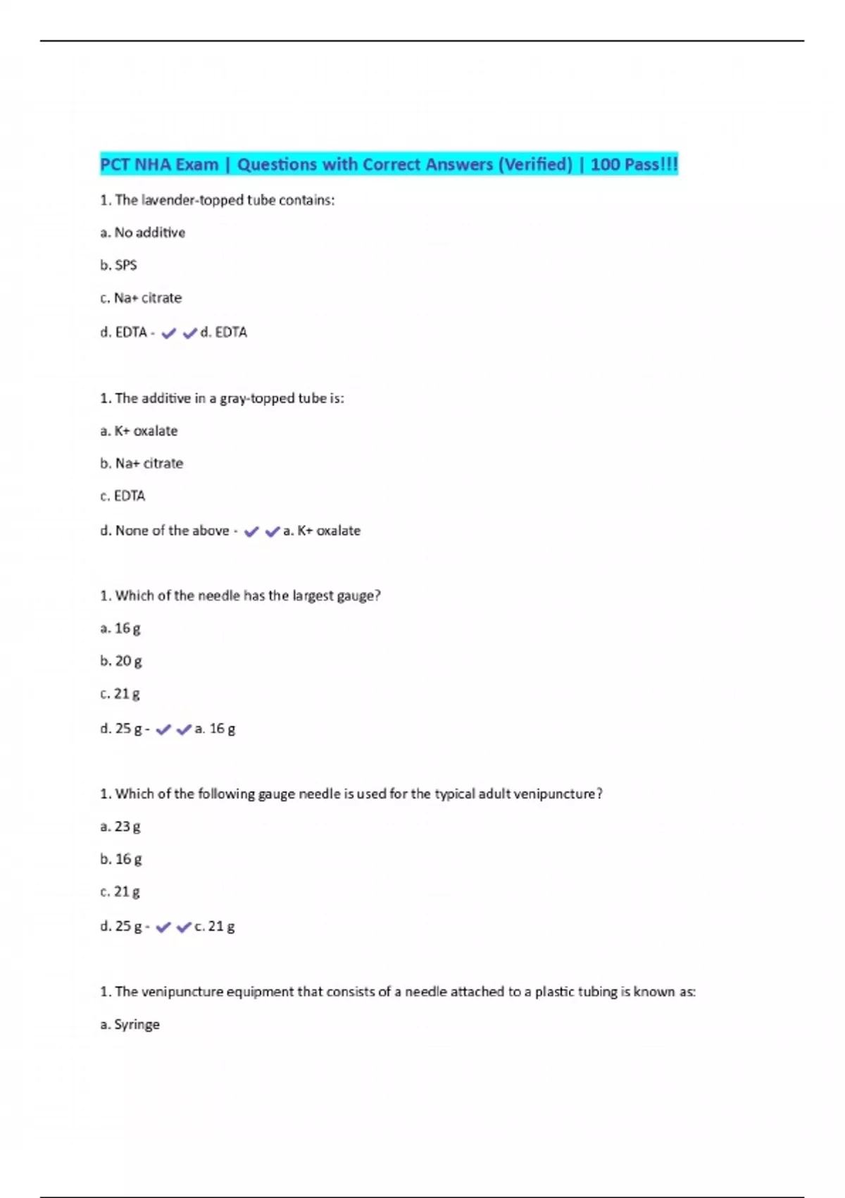 PCT NHA Exam | Questions with Correct Answers (Verified) | 100 Pass!!!