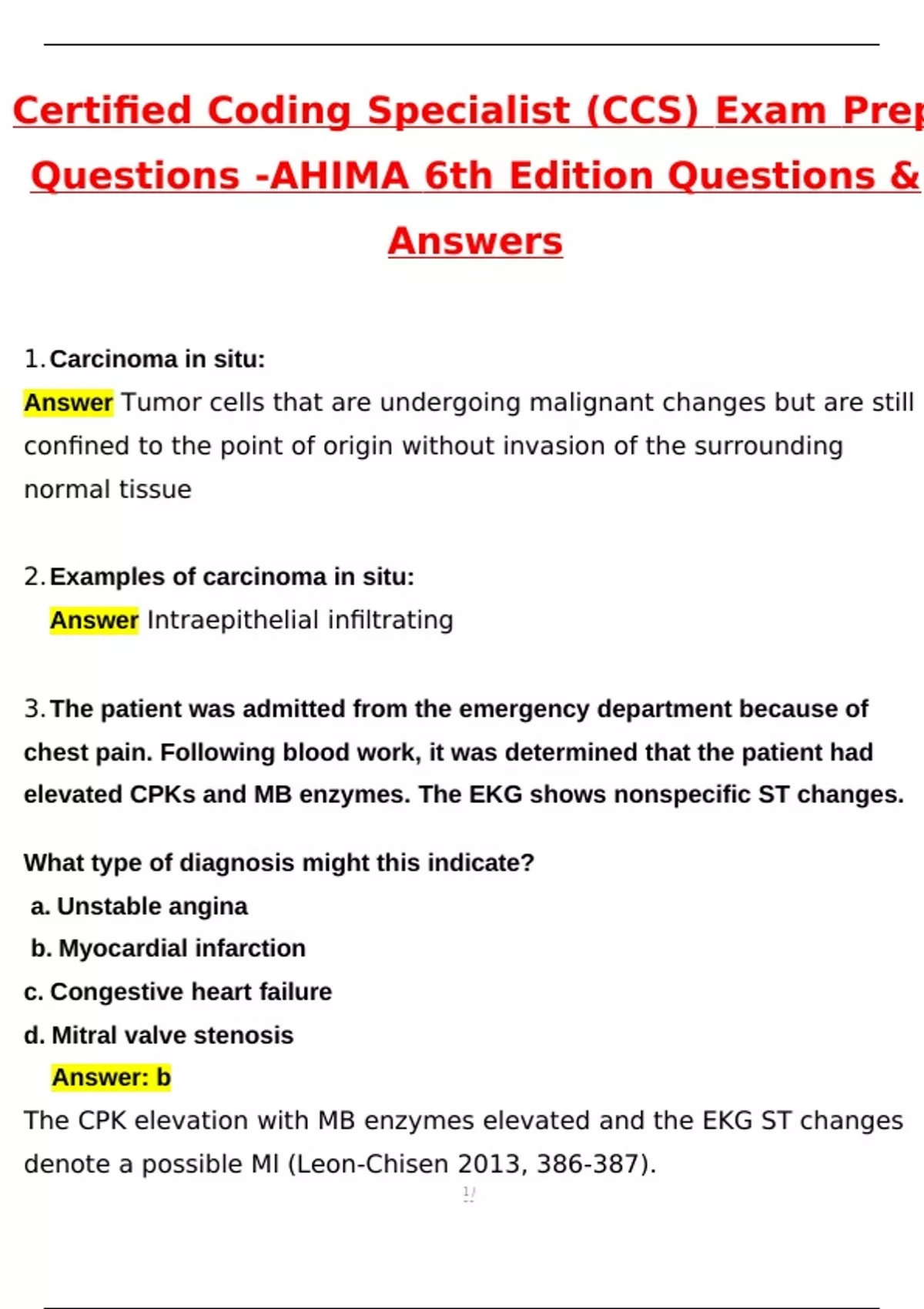 Certified Coding Specialist (CCS) Exam Prep AHIMA 6th Edition Actual 2025 Questions and Verified Answers (2025 / 2026)/ A+ GRADE COMPLETE