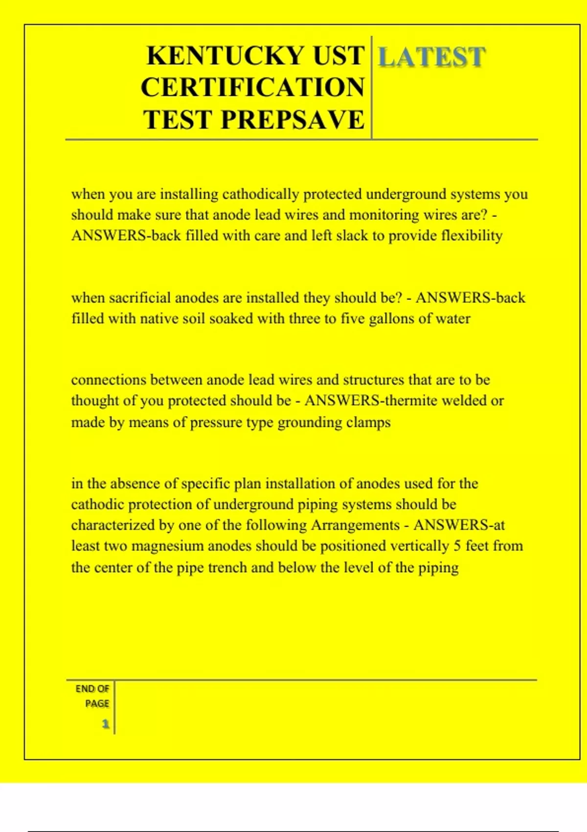 KENTUCKY UST CERTIFICATION TEST PREP QUESTIONS AND ANSWERS 2025