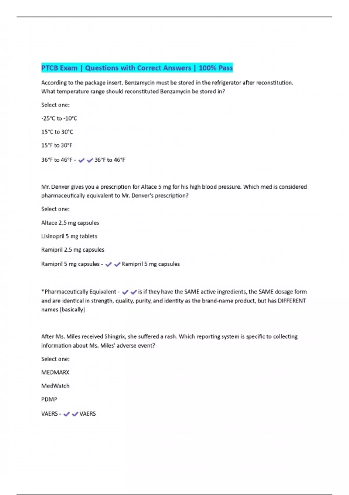PTCB Exam | Questions with Correct Answers | 100% Pass