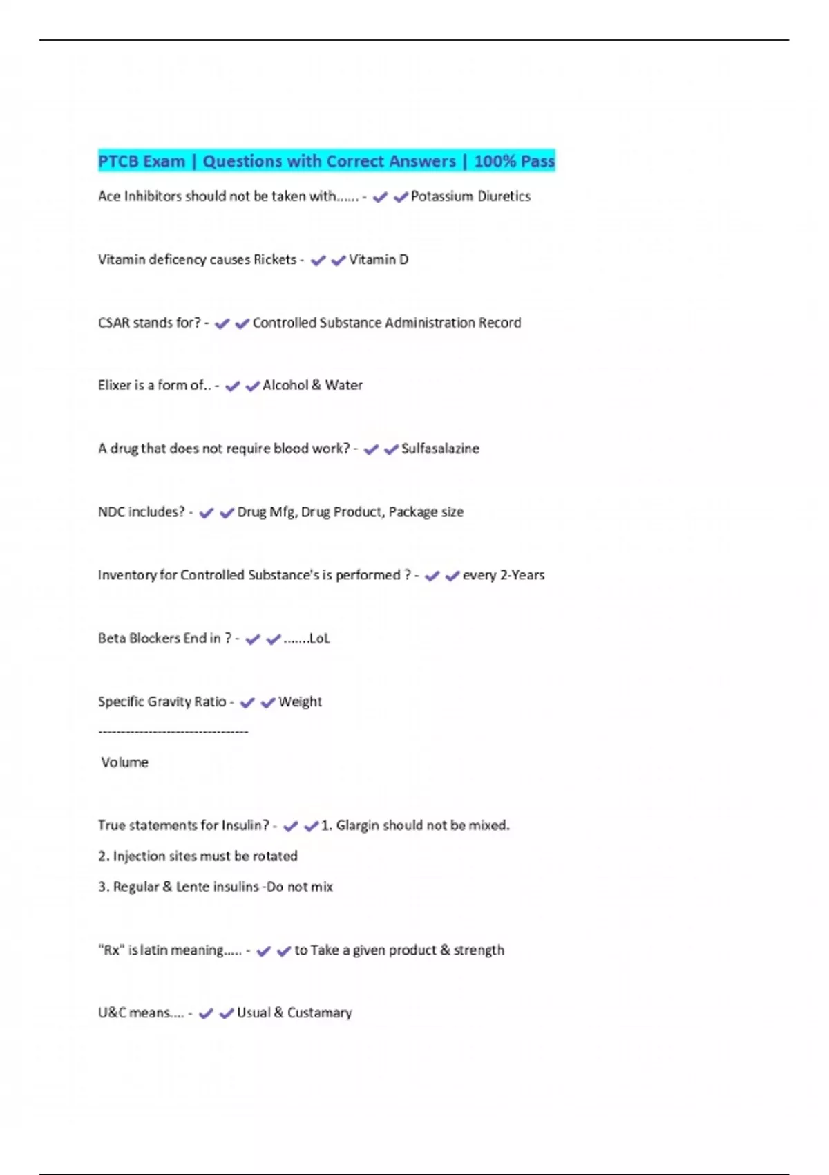 PTCB Exam | Questions with Correct Answers | 100% Pass