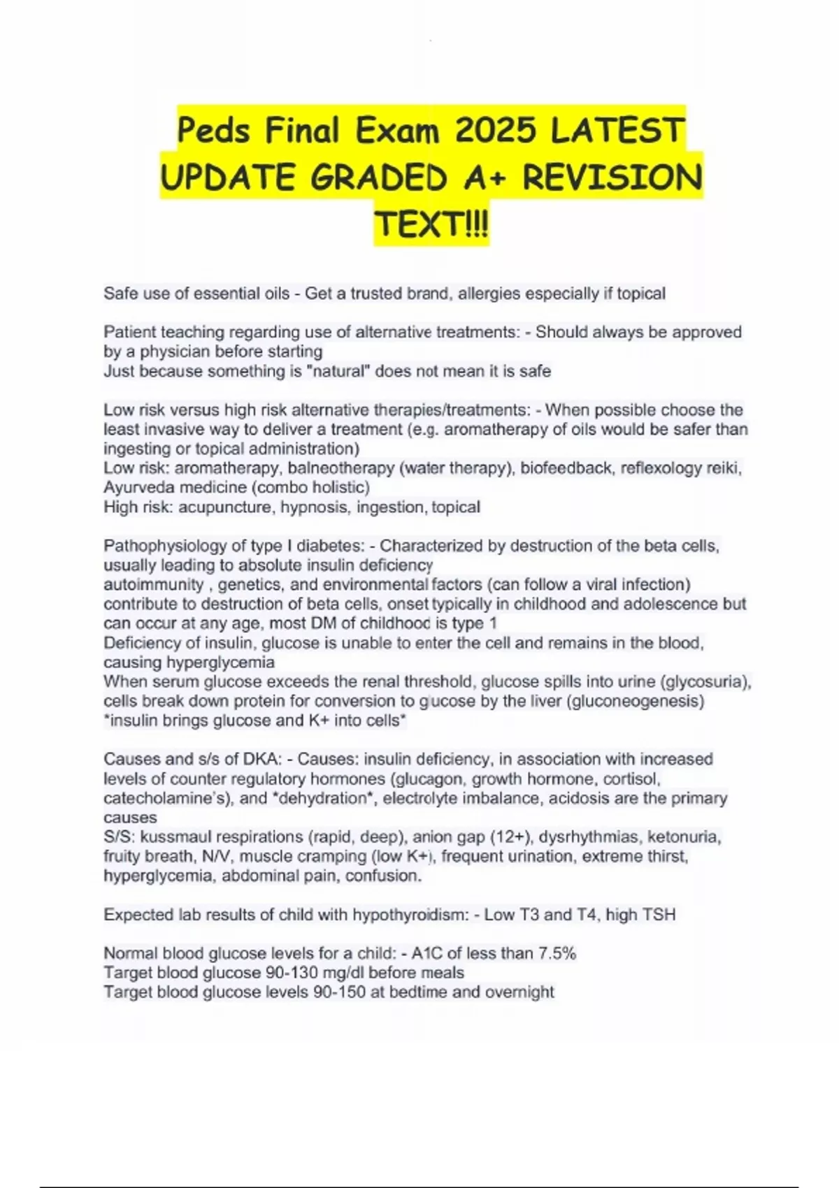 Peds Final Exam 2025 LATEST UPDATE GRADED A+ REVISION TEXT!! Peds Final Exam 2025 LATEST UPDATE GRADED A+ REVISION TEXT!!
