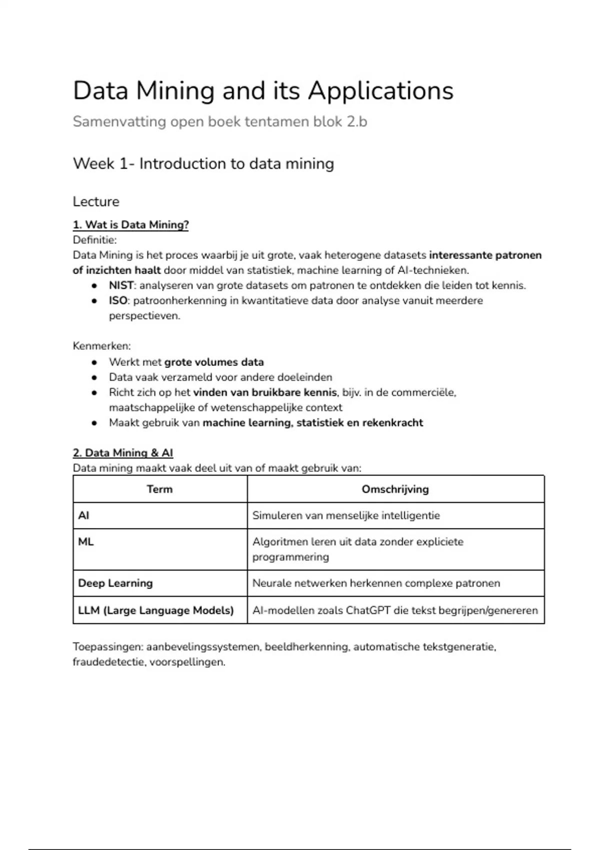 Data Mining is het proces waarbij je uit grote, vaak heterogene datasets interessante patronen