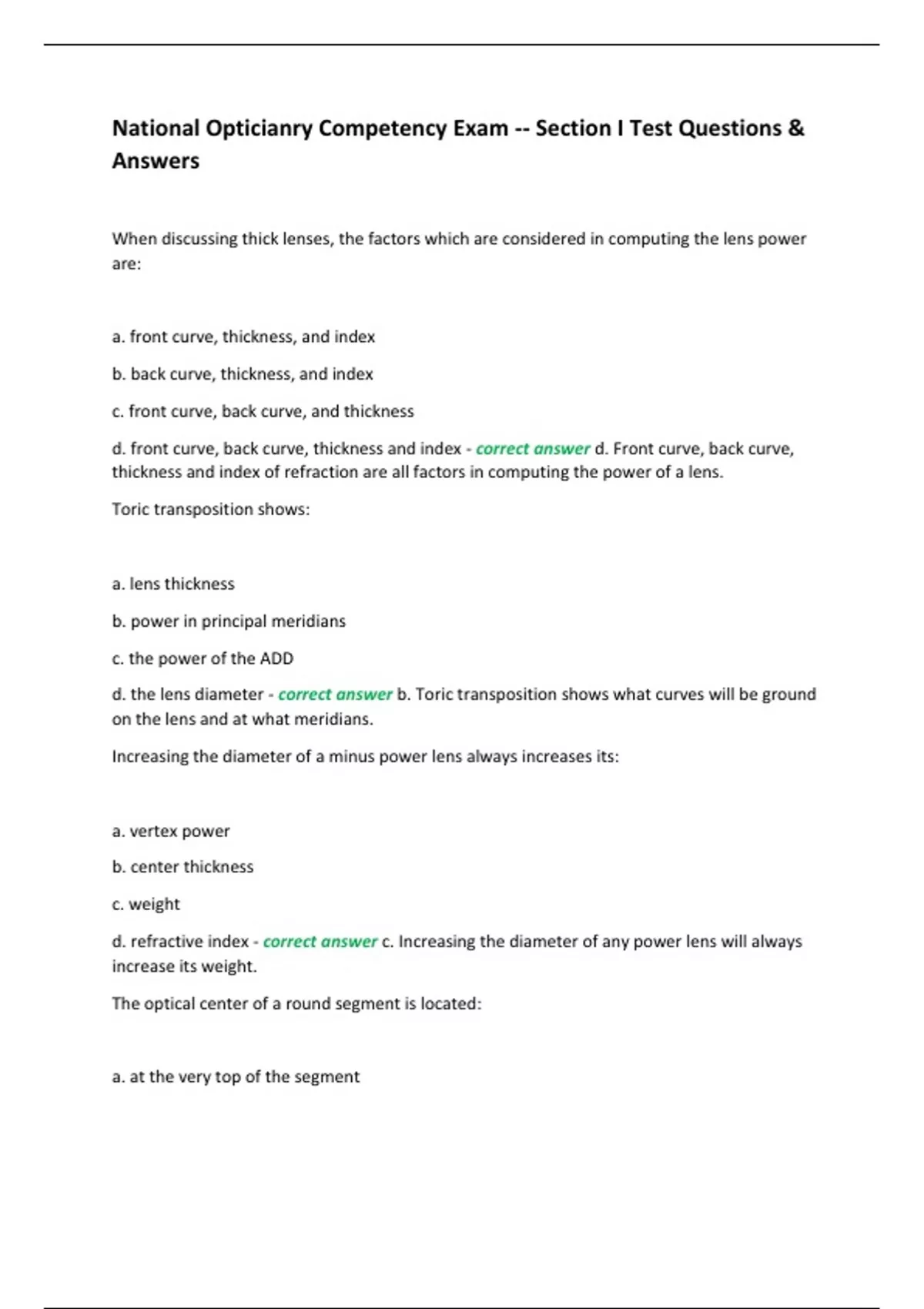 d. refractive index - correct answer c. Increasing the diameter of any power lens will always