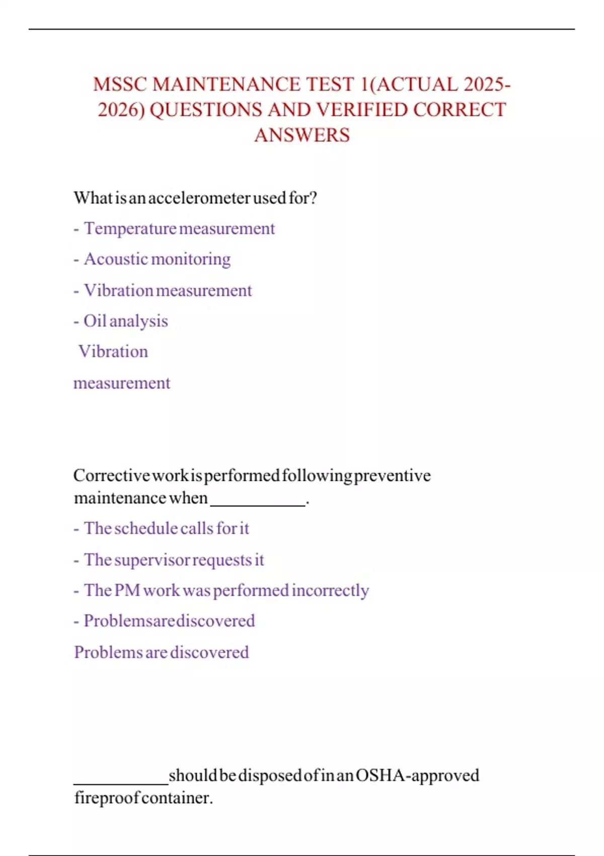 MSSC MAINTENANCE TEST 1(ACTUAL ) QUESTIONS AND VERIFIED CORRECT ANSWERS