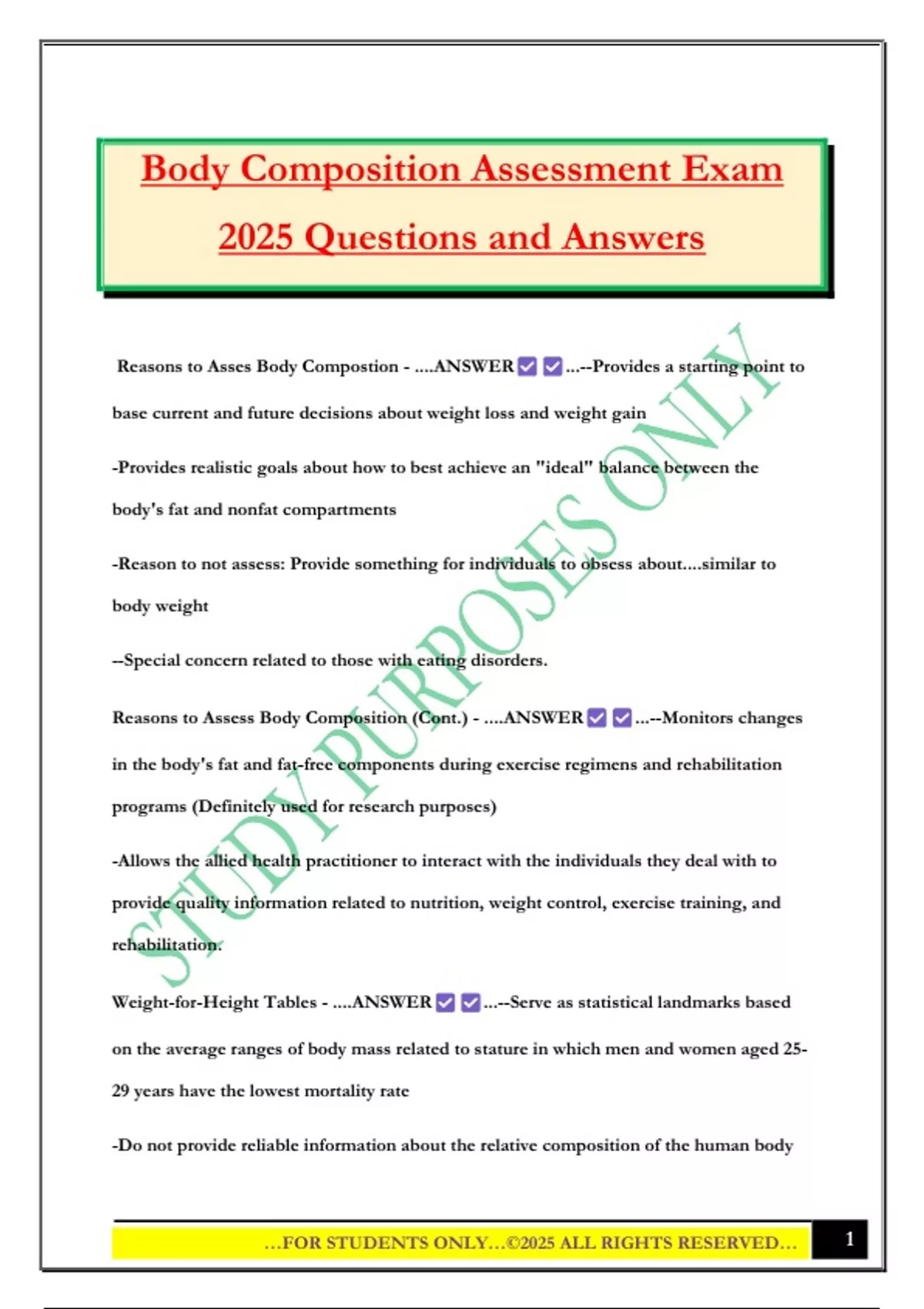 Reasons to Asses Body Compostion - ....ANSWER ...--Provides a starting point to