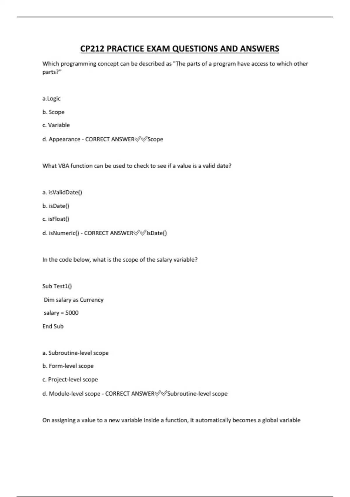 d. Module-level scope - CORRECT ANSWER✅✅Subroutine-level scope