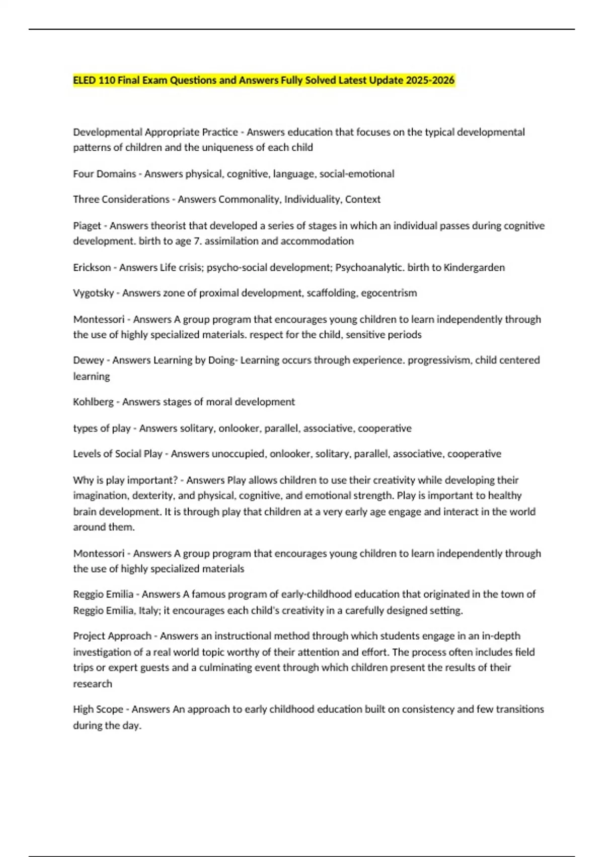 Developmental Appropriate Practice - Answers education that focuses on the typical developmental