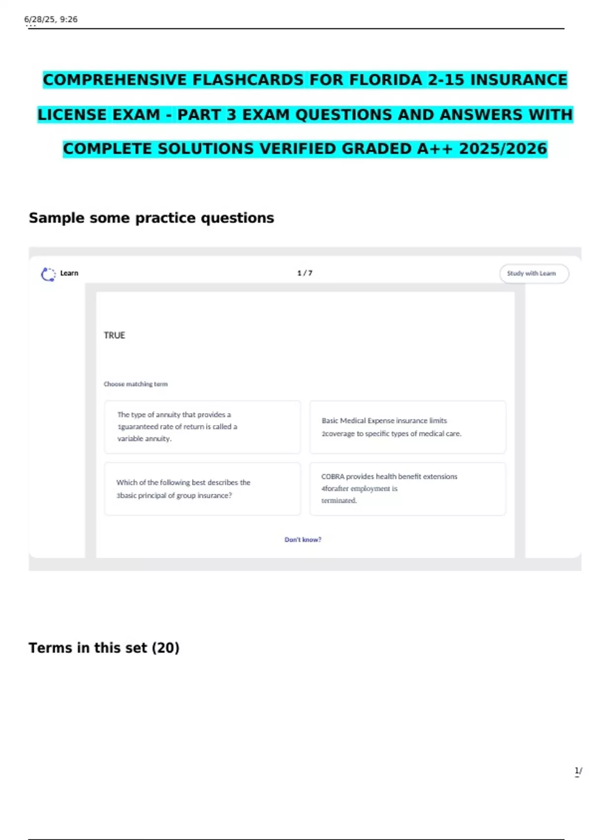 COMPREHENSIVE FLASHCARDS FOR FLORIDA 2-15 INSURANCE