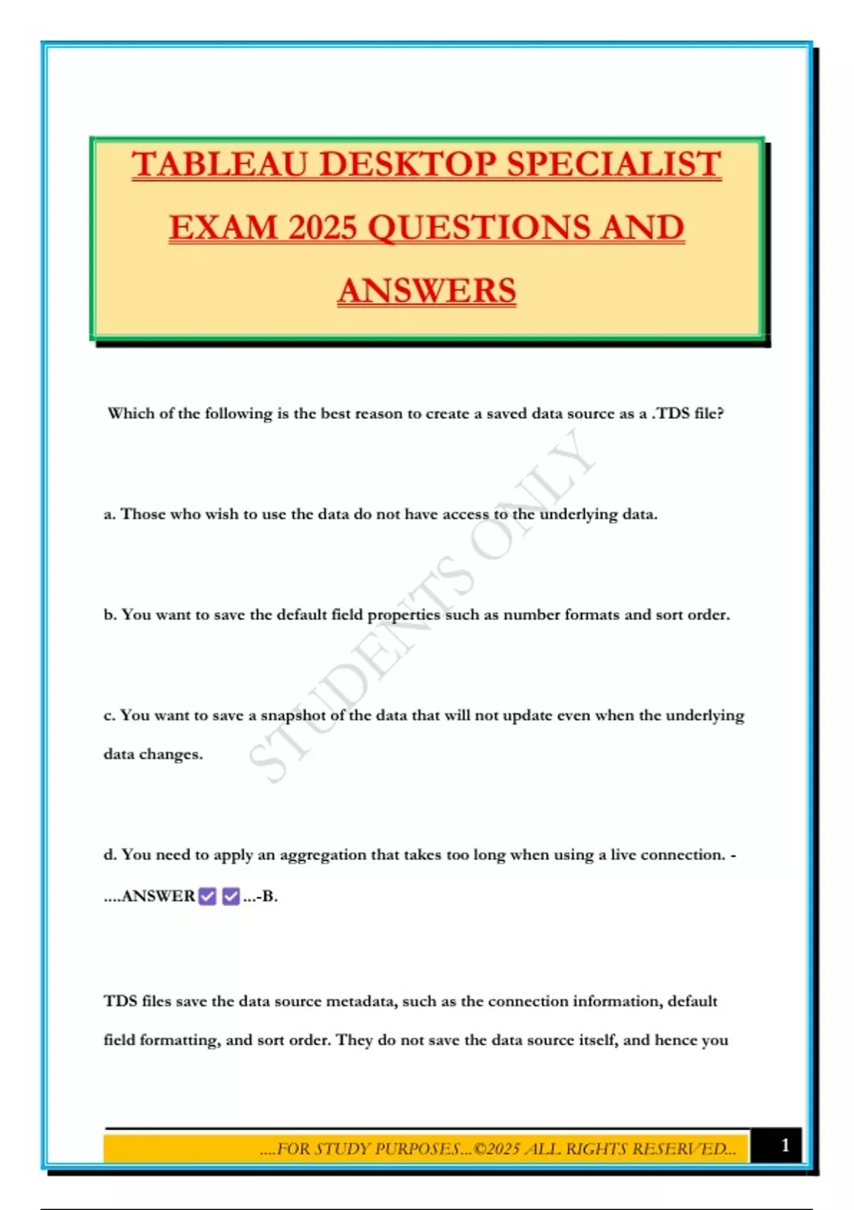 Which of the following is the best reason to create a saved data source as a .TDS file?