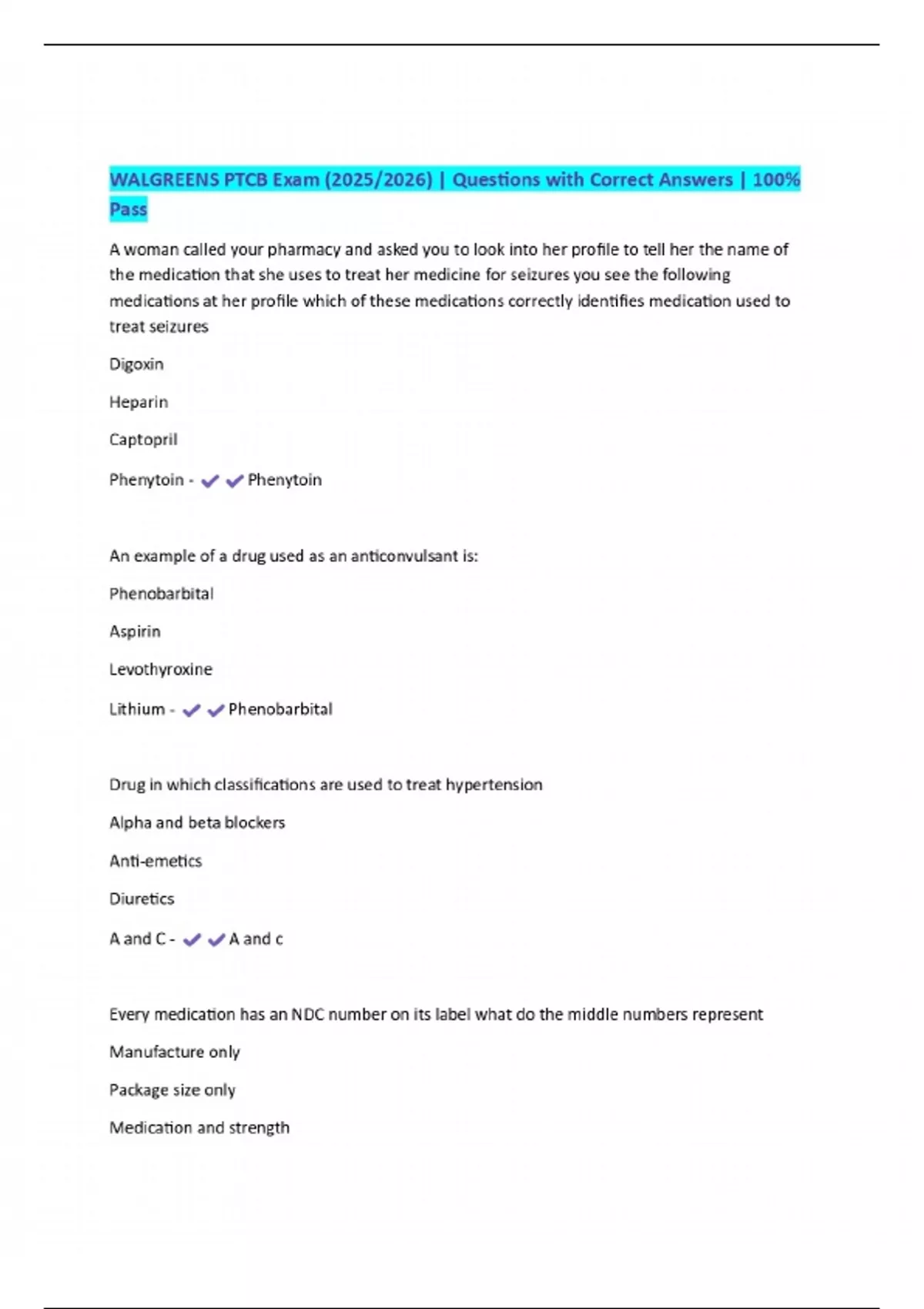 WALGREENS PTCB Exam (2025/2026) | Questions with Correct Answers | 100% Pass