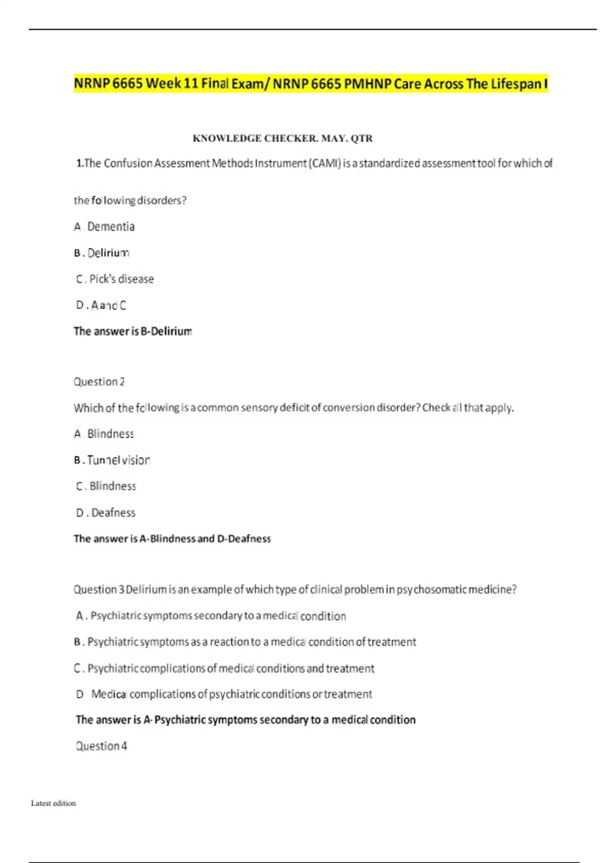 NRNP 6665 WEEK 11 FINAL EXAM. GRADED A+. LATEST UPDATE WITH ACCURATE QUESTIONS AND ANSWERS