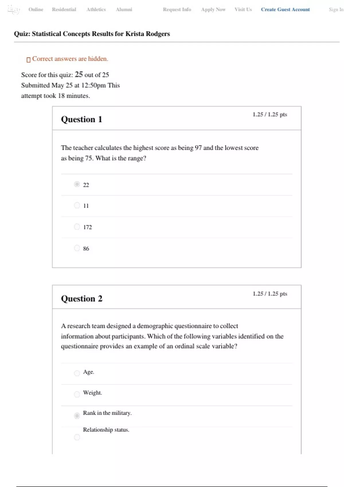 Quiz: Statistical Concepts Results for Krista Rodgers