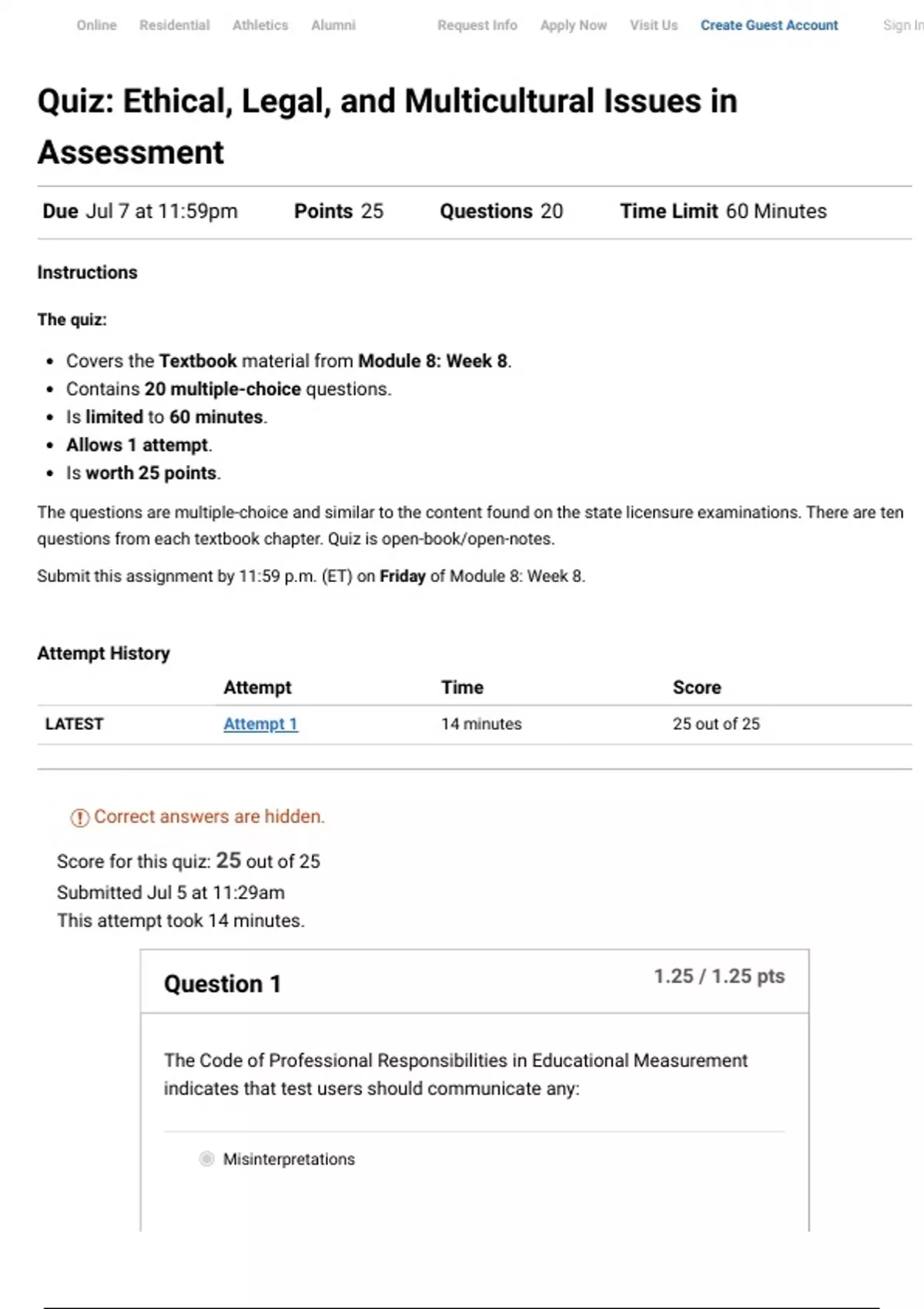 COUC521 Quiz: Ethical, Legal, and Multicultural Issues in Assessment | Score 25/25 | Liberty University
