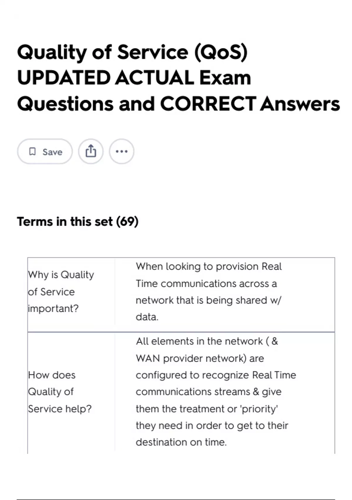 Quality of Service (QoS) UPDATED ACTUAL Exam Questions and CORRECT Answers