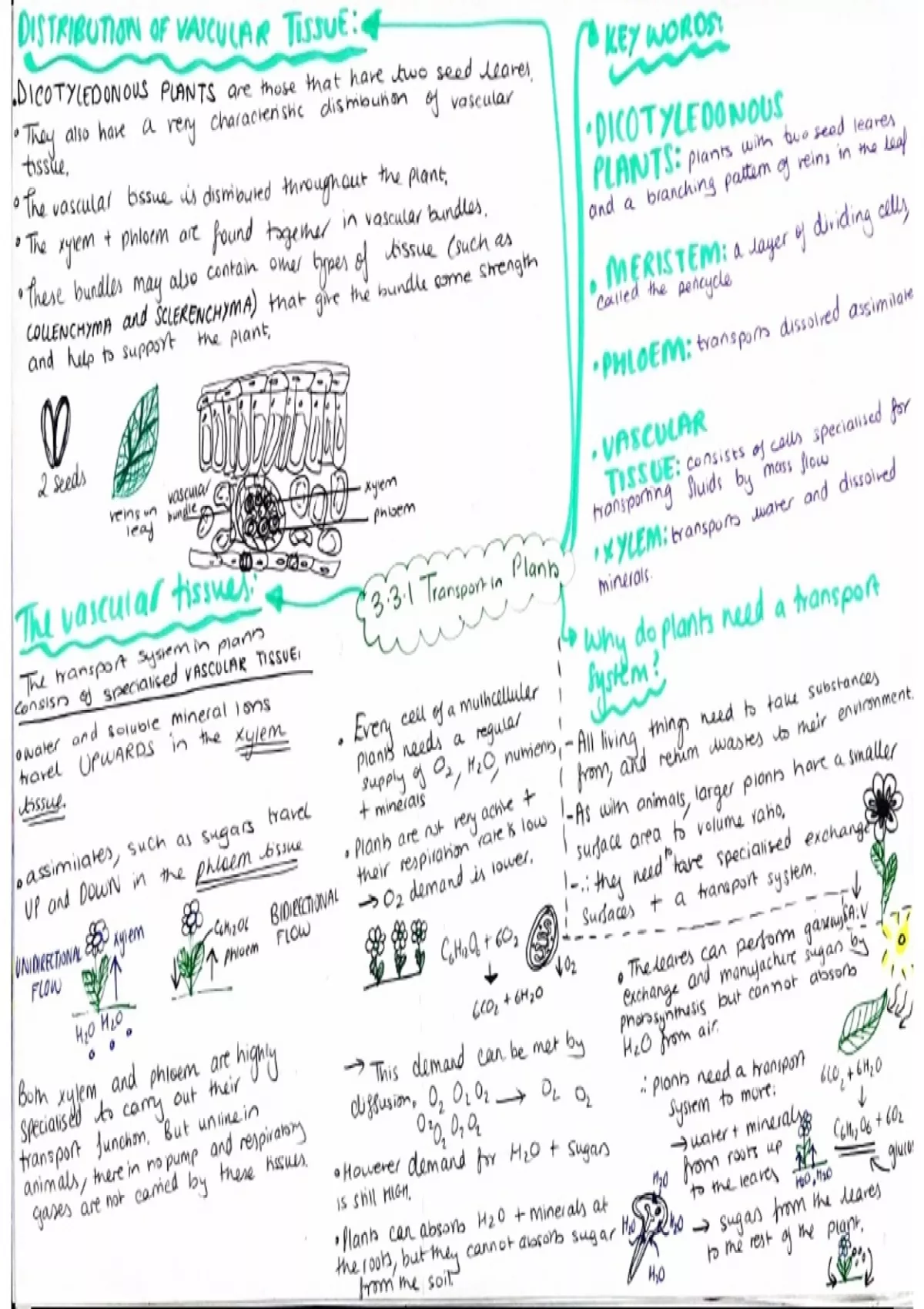 3.1.3 Transport in plants - Summary Mindmap notes