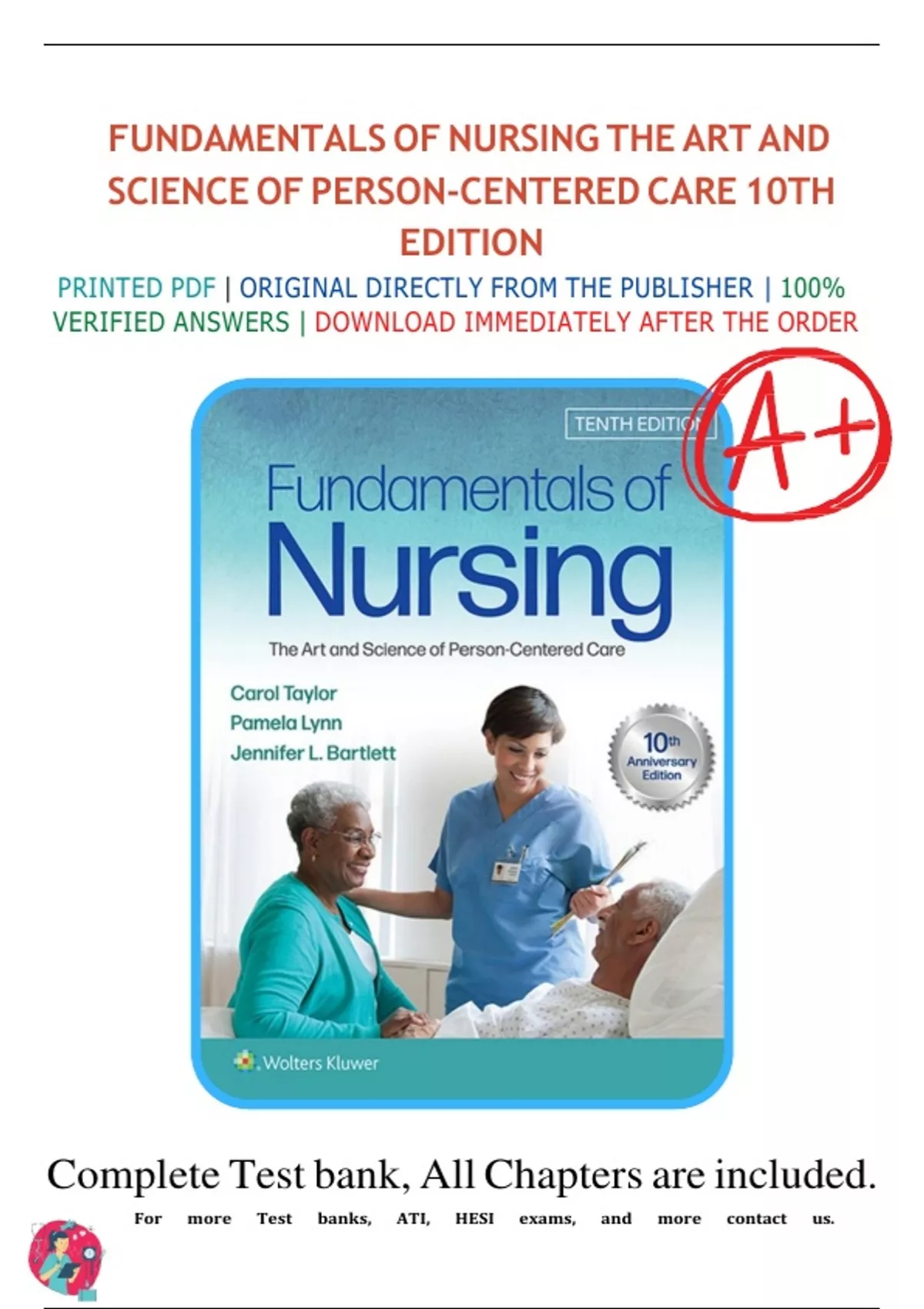 ,Test Bank - Fundamentals of Nursing (10th by Taylor)