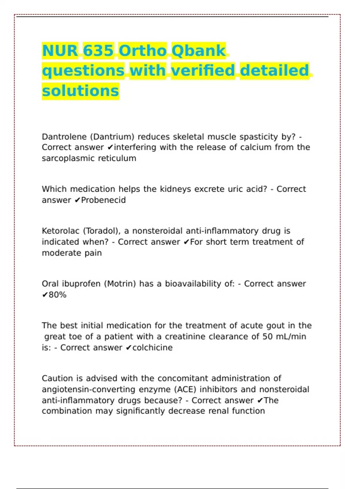 NUR 635 Ortho Qbank |! |! |! |!