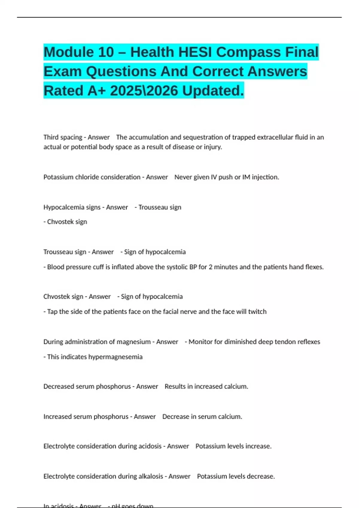 Increased central venous pressure causes - Answer - Excessive blood volume from sodium and