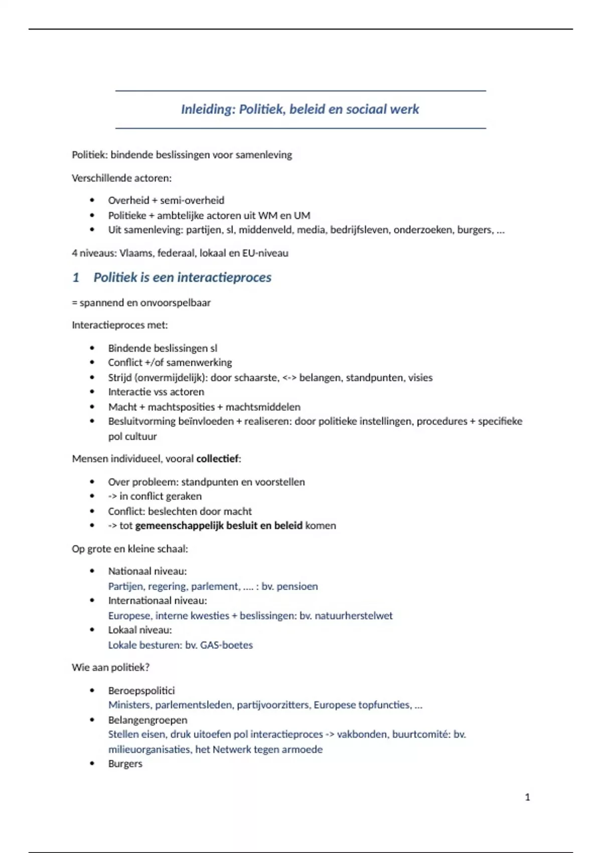 Een samenvatting van bijna alle hoofdstukken van politiek en beleid gegeven door Christophe Timbremont. Bij de samenvatting is het belangrijk om het boek erbij te houden, maar het is een duidelijk overzicht van alles.