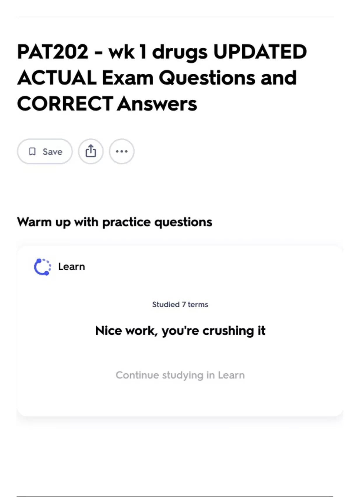 Continue studying in Learn
