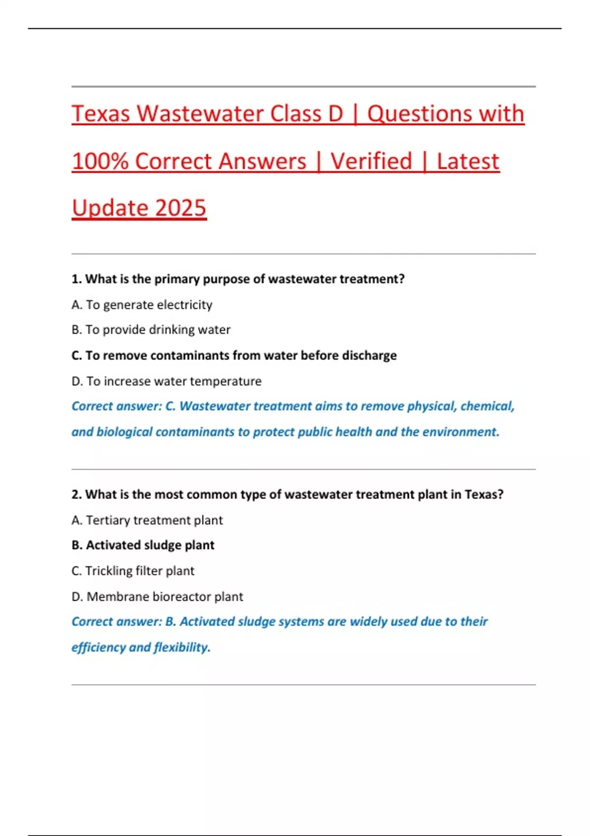 Correct answer: C. Wastewater treatment aims to remove physical, chemical,