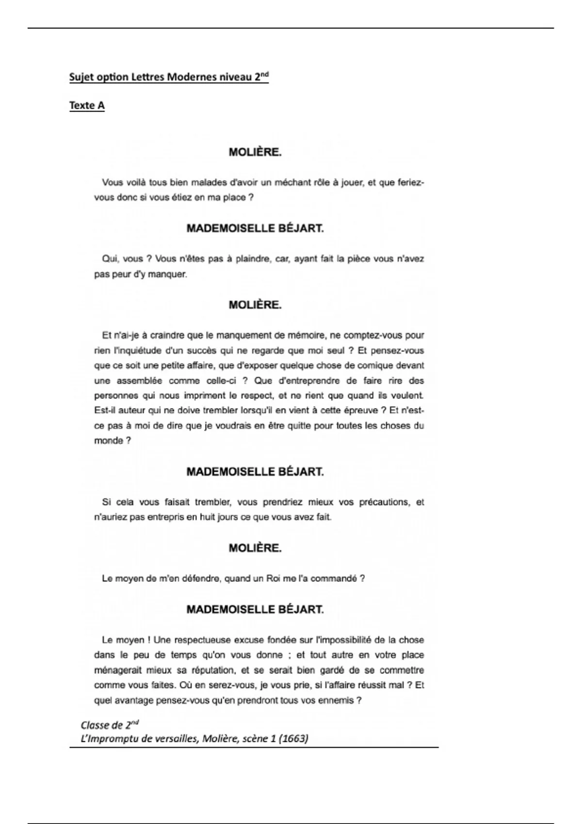 Sujet op)on Le,res Modernes niveau 2nd