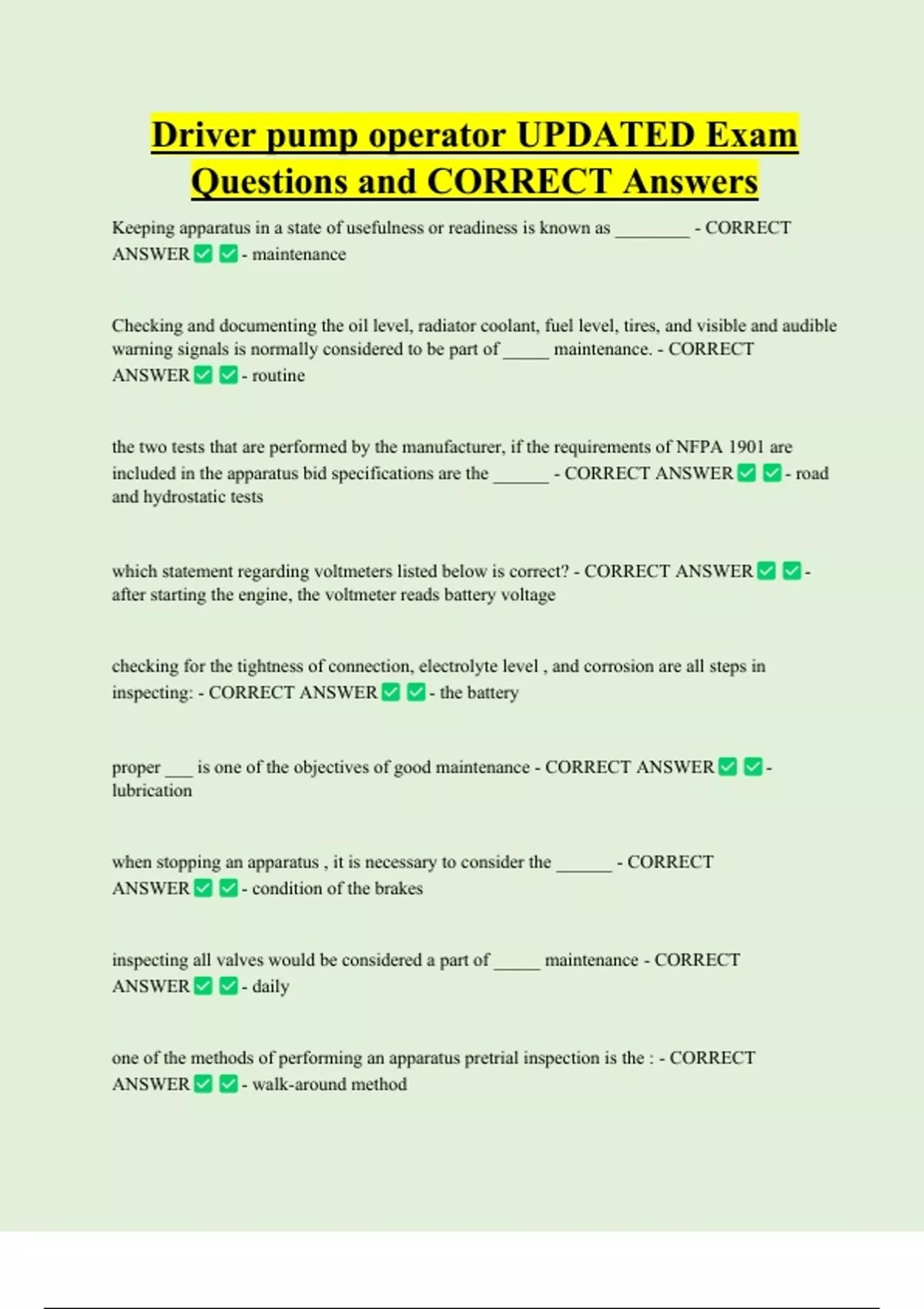 driver/operator? - CORRECT ANSWER - corrosion on the battery terminals