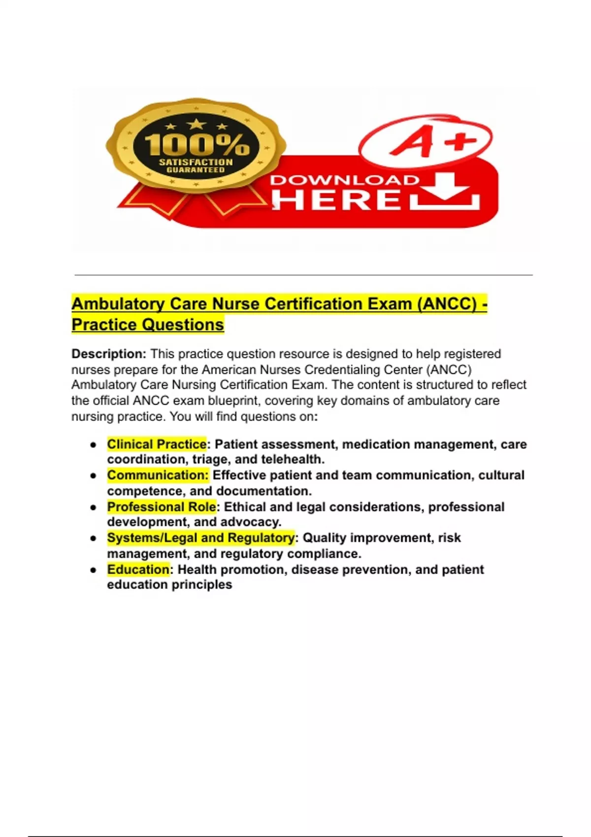 Ambulatory Care Nursing Certification Exam. The content is structured to reflect
