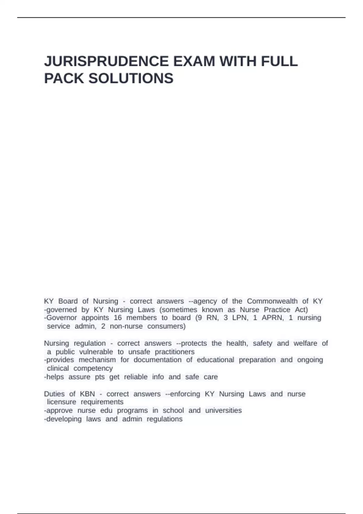 JURISPRUDENCE EXAM WITH FULL PACK SOLUTIONS