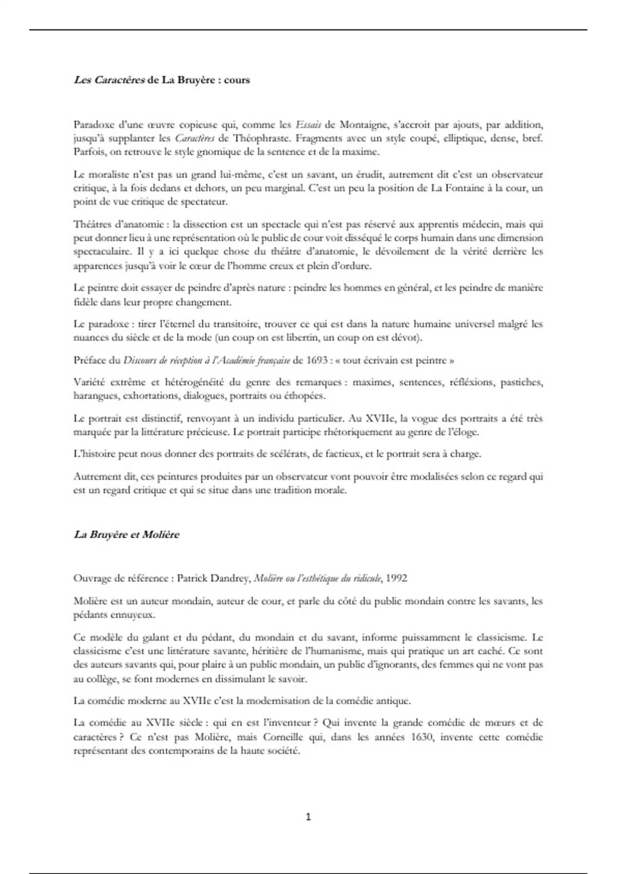 Je partage mes notes de cours et dissertations avec plans détaillés sur les Caractères de La Bruyère (agrégation et capes lettres modernes).