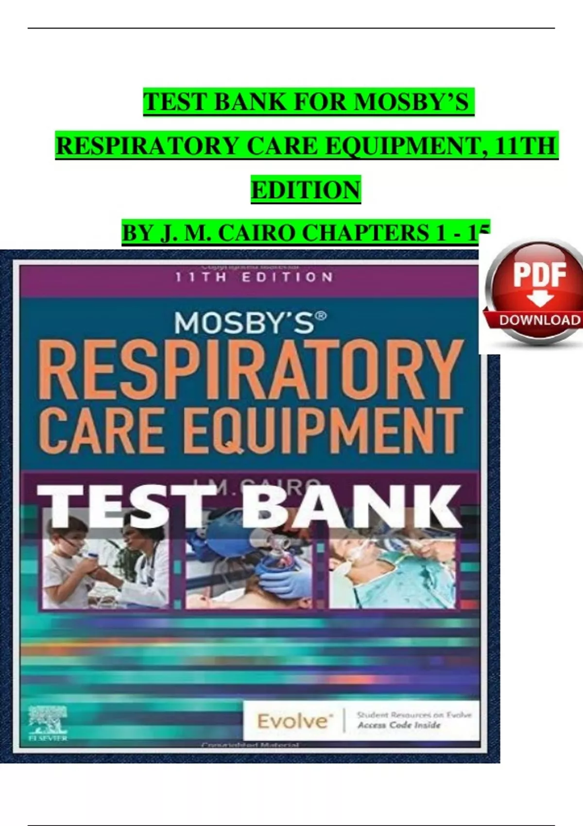 TEST BANK For Mosby’s Respiratory Care Equipment, 11th Edition, by J. M. Cairo, Verified Chapters 1 - 15, Complete Newest Version ISBN-9780323712217