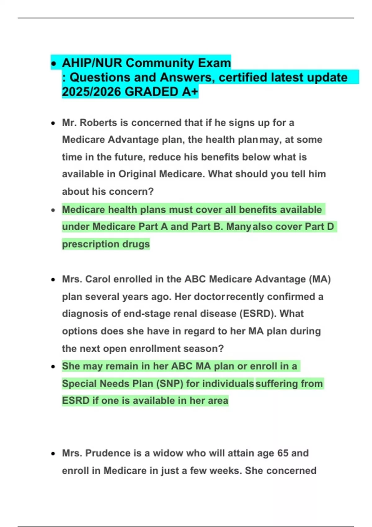 • Mrs. Carol enrolled in the ABC Medicare Advantage (MA)