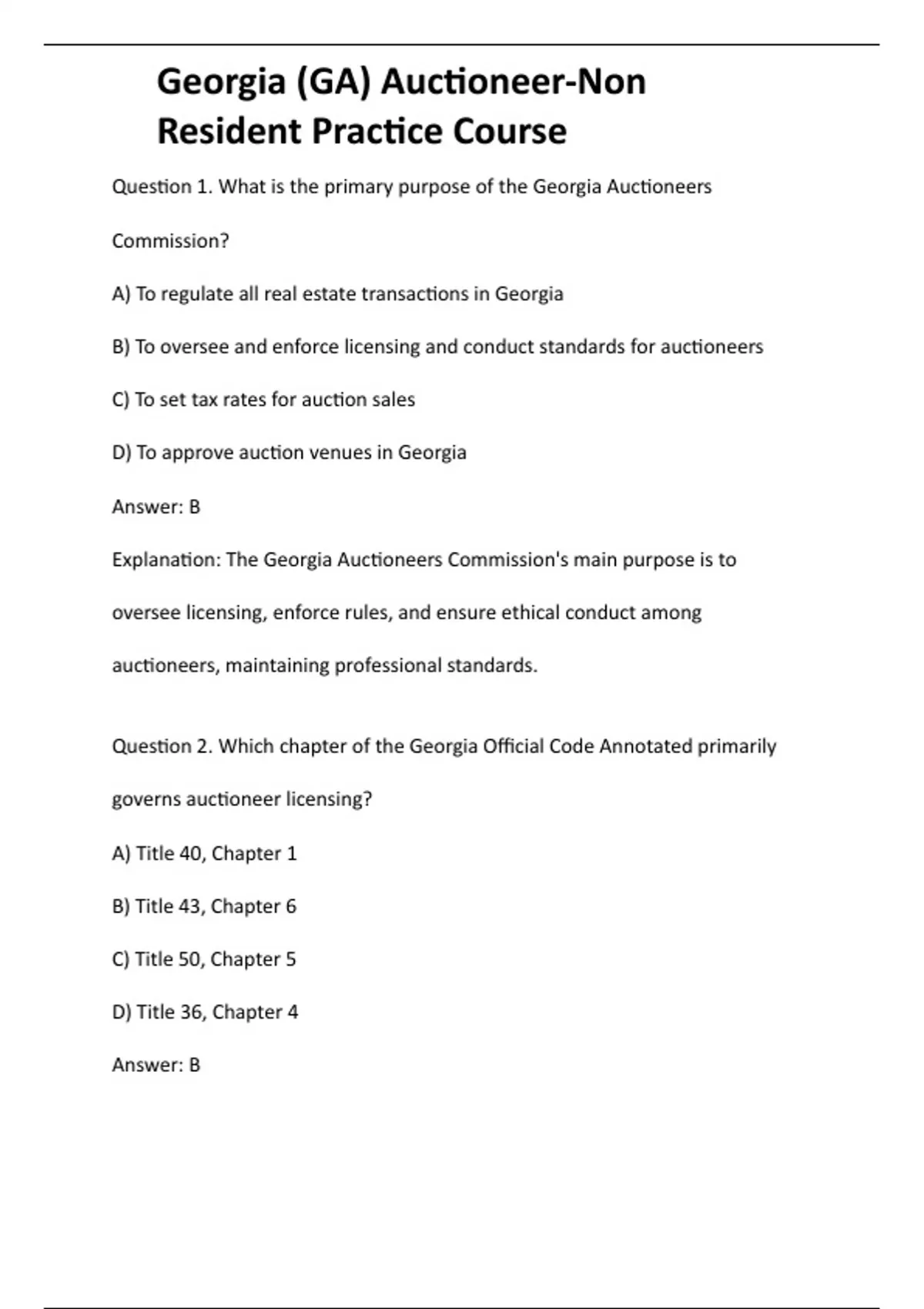 Question 1. What is the primary purpose of the Georgia Auctioneers