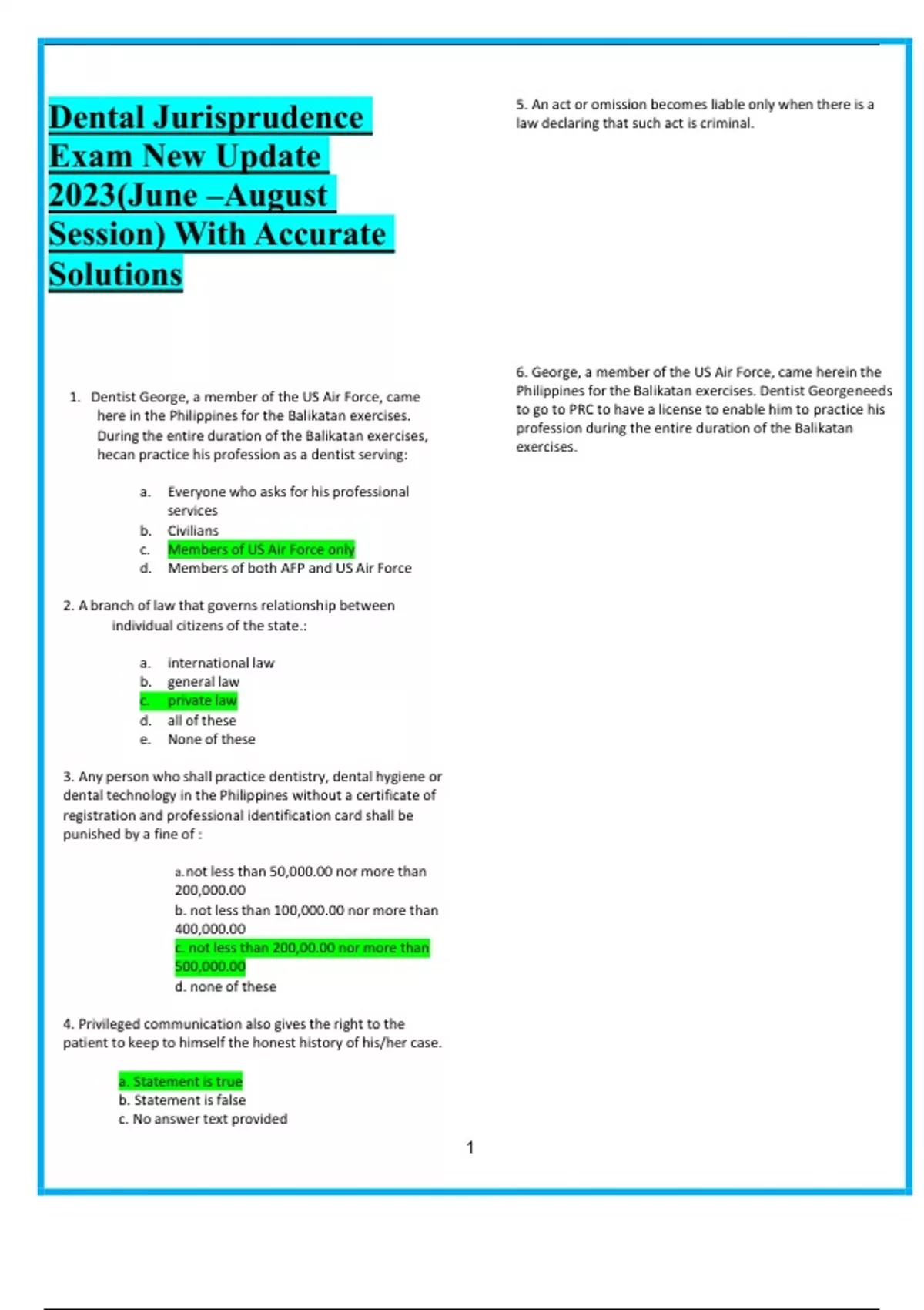 Dental Jurisprudence Exam New Update 2025(June –August Session) With Accurate Solutions