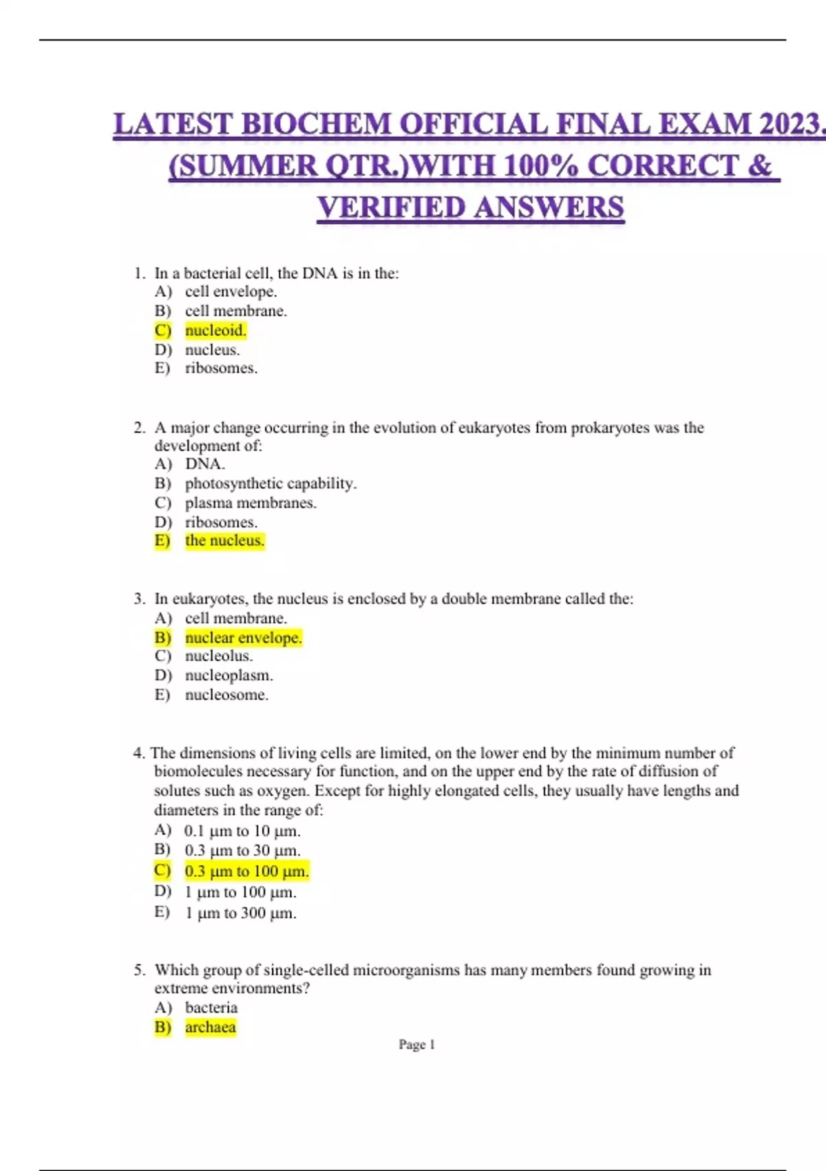 latest biochem official final exam 2023 summer q