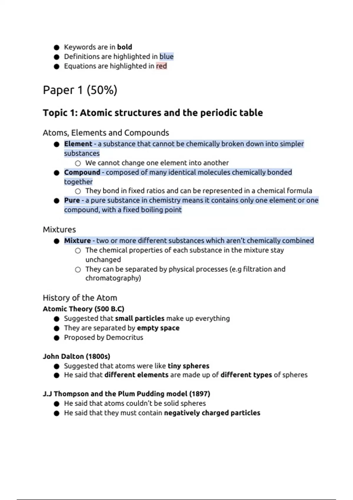 Atoms, Elements and Compounds