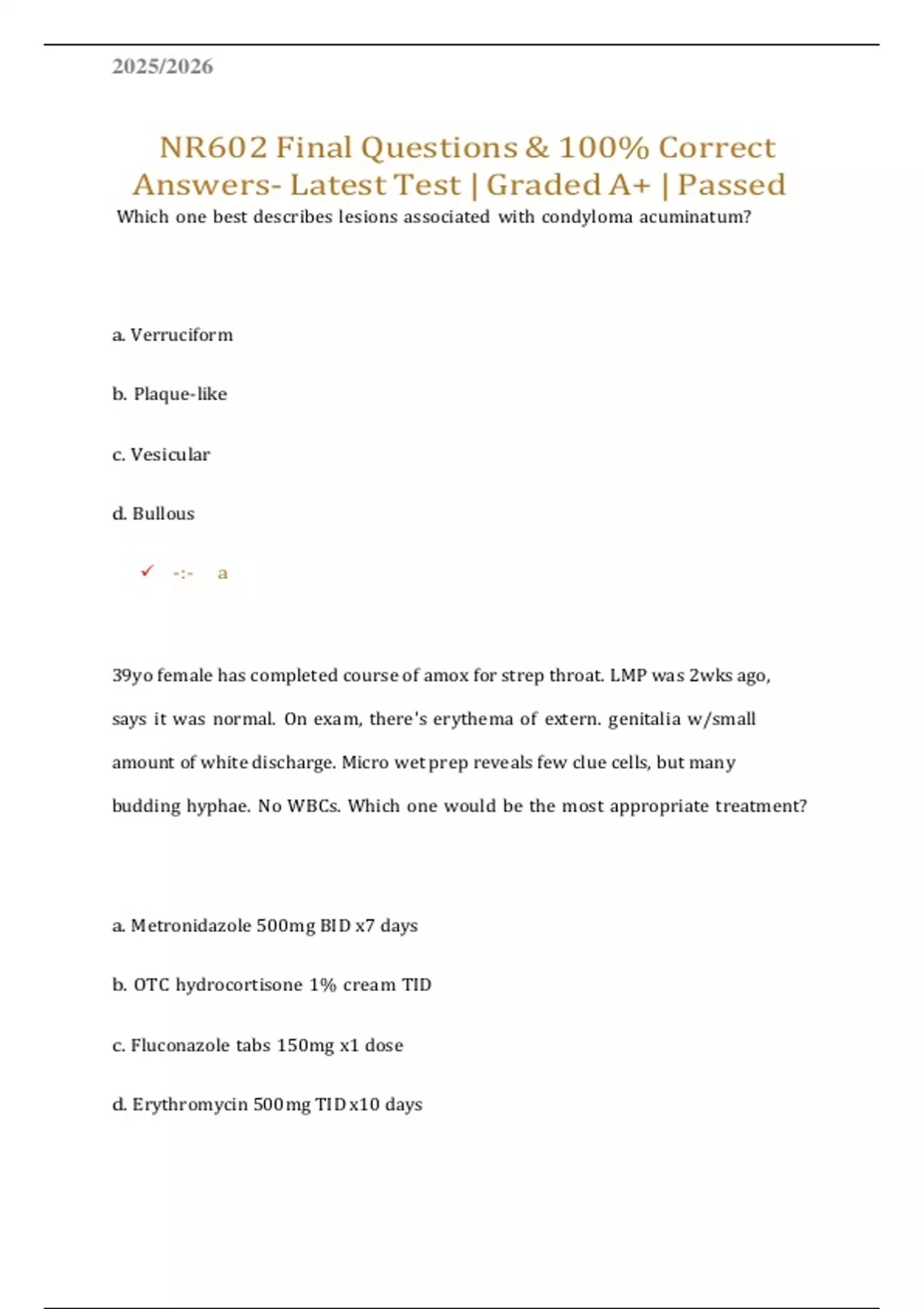 NR602 Final Questions & 100% Correct
