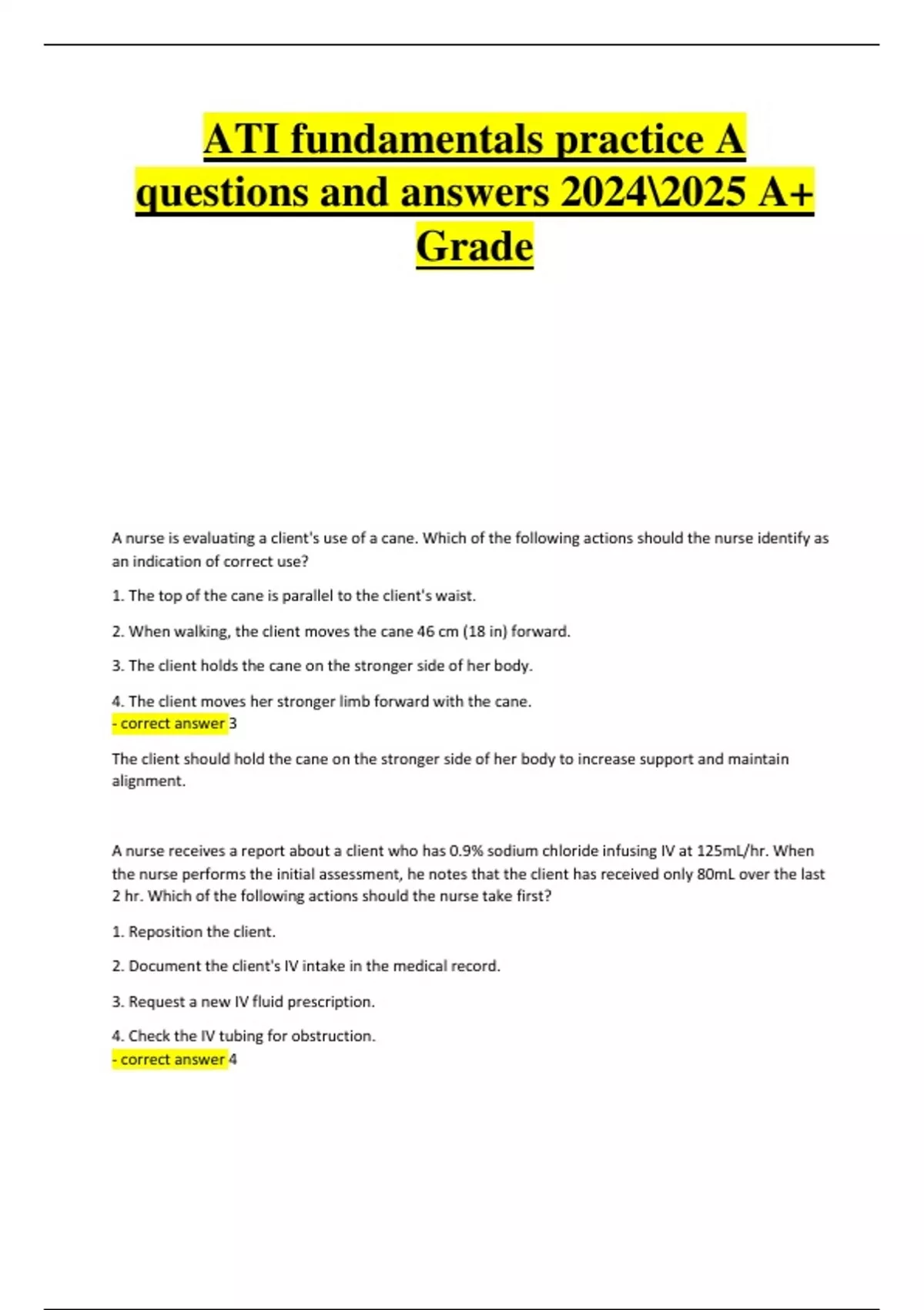 The client should hold the cane on the stronger side of her body to increase support and maintain