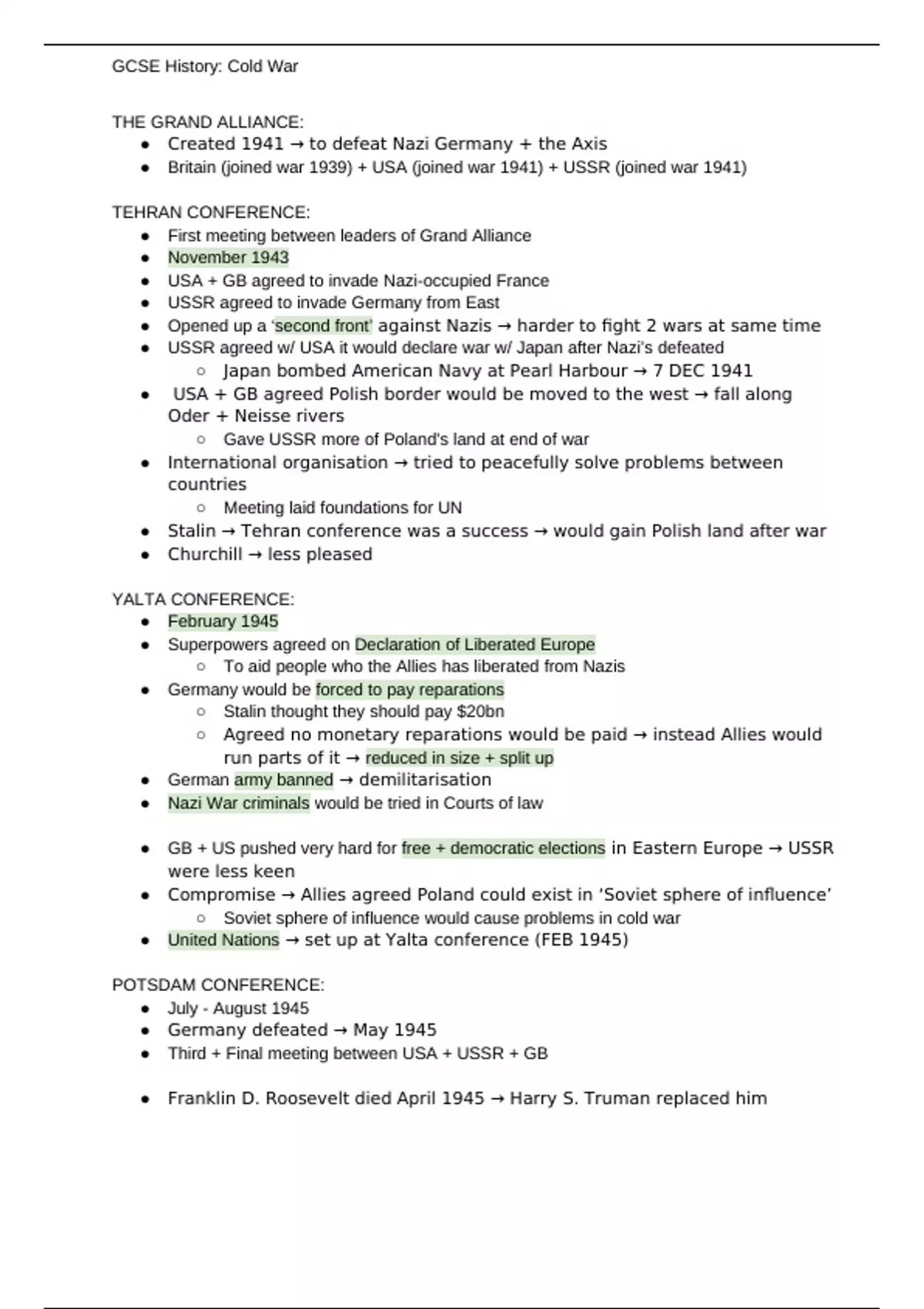 ● Compromise → Allies agreed Poland could exist in ‘Soviet sphere of influence’