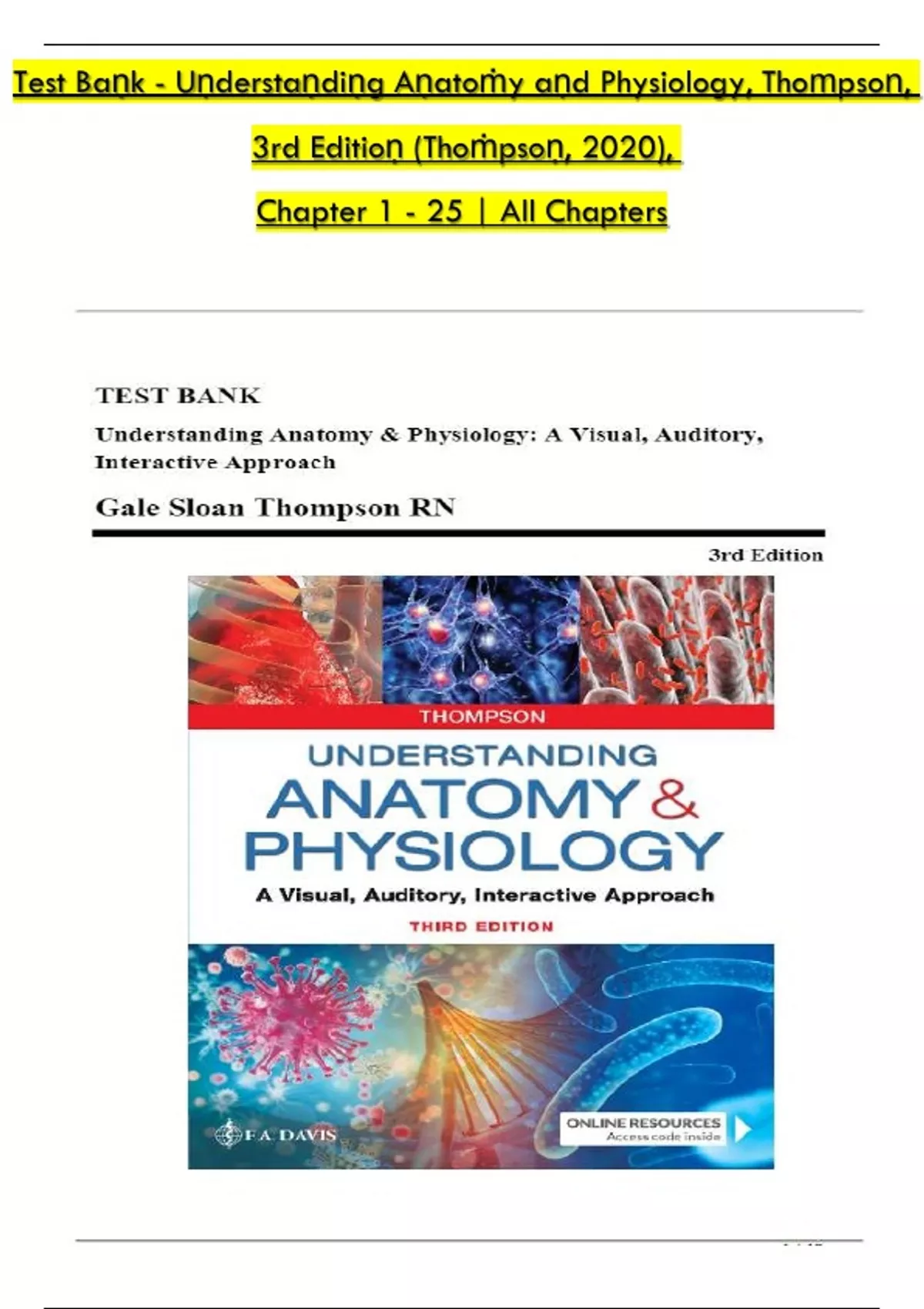 The Test Bank for Understanding Anatomy & Physiology, 3rd Edition, Gale Sloan Thompson
